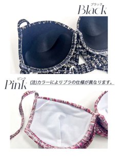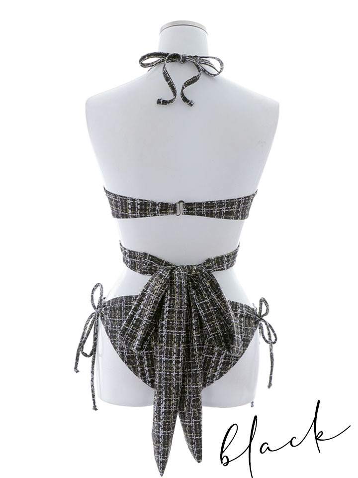 ツイード バッククロスリボン バックリボン ツイード柄水着 ブラック