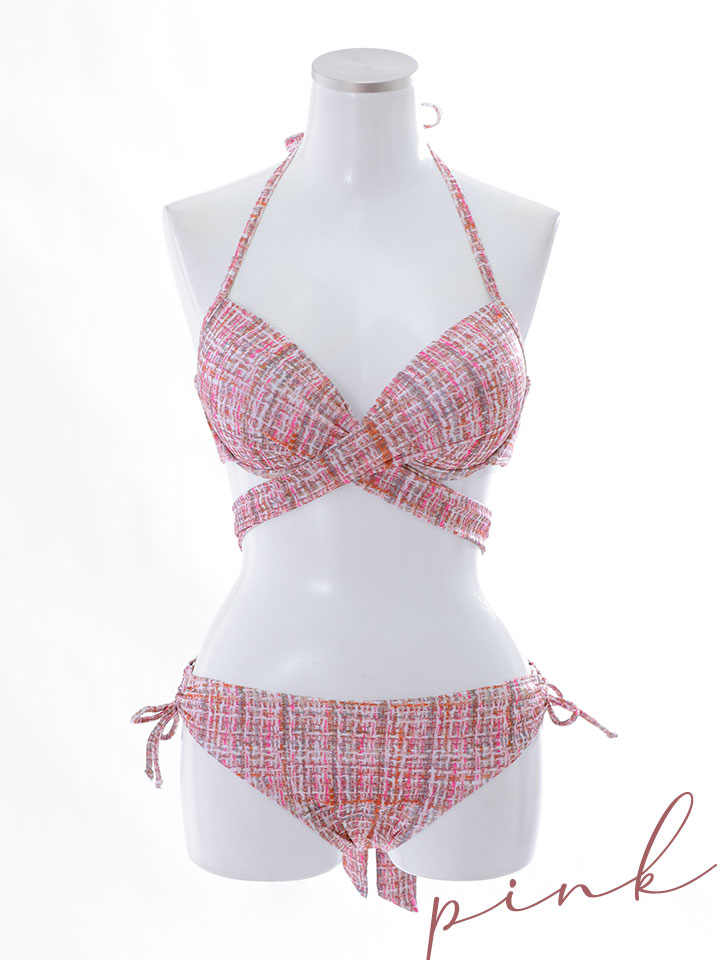 トレンドのツイード柄のビキニで主役になること間違いなし!