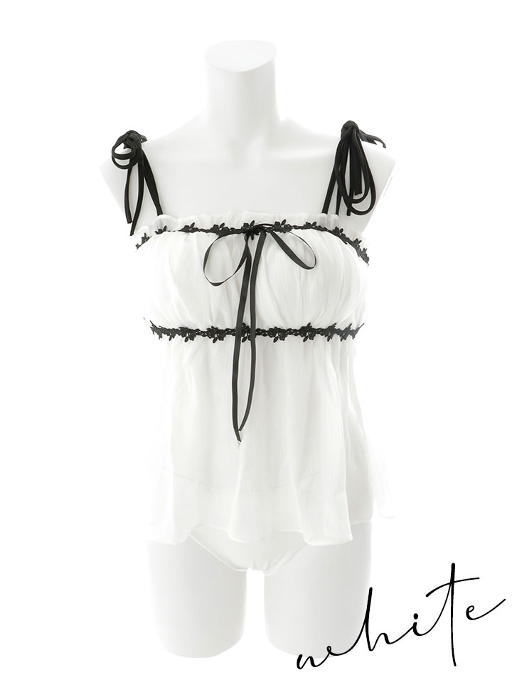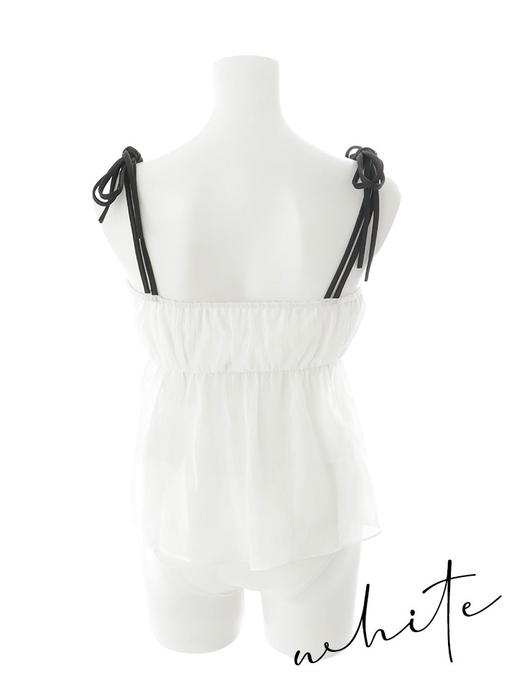 露出少なめ 体型カバー 素材 マテリアル リボン バンドゥ ビスチェ