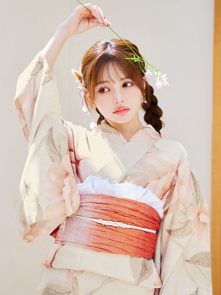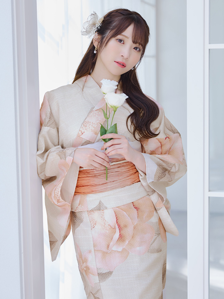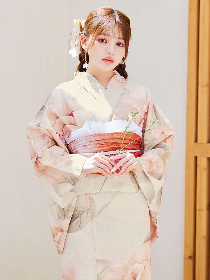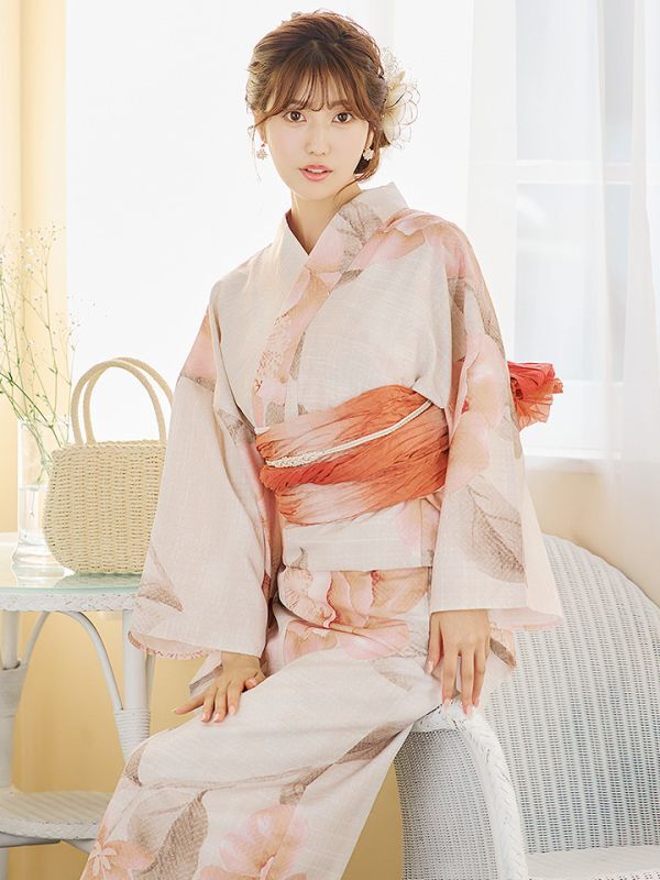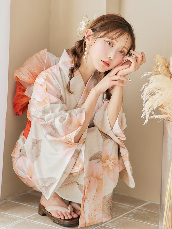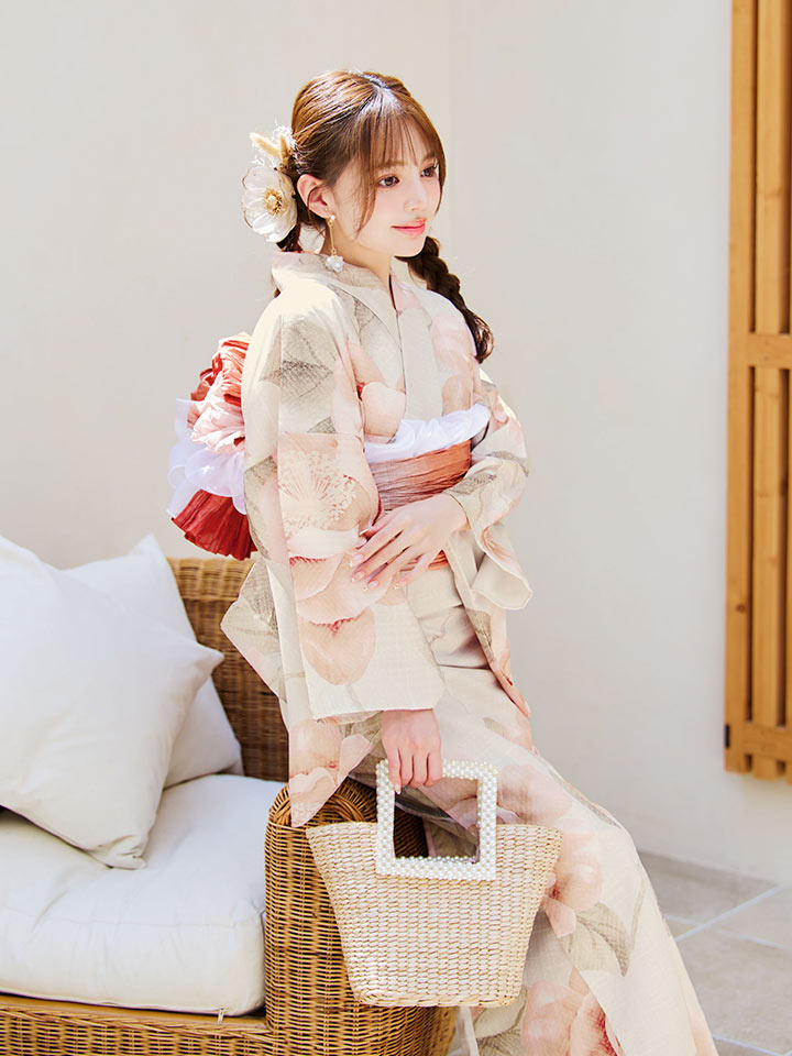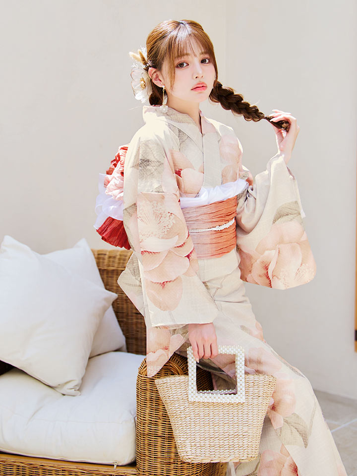 【即日発送】ピンクベージュ牡丹浴衣【浴衣3点セット 浴衣/帯/下駄】 [YMT] [Y-8056-nz-dzh-P-F-25PO]