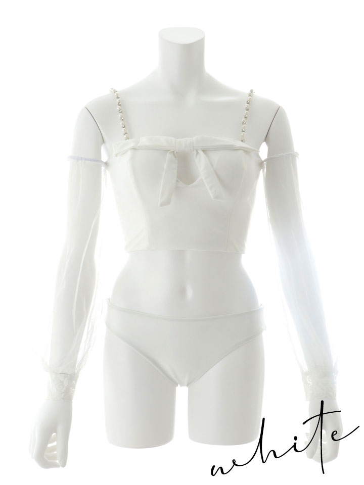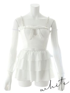 【即日発送】【ビキニ】【水着】フリルティアードチュールリボンビキニ 3点セット[YMT] [M260dzw-W-25PO]