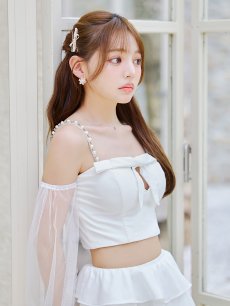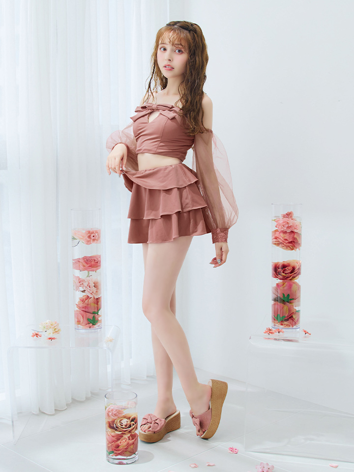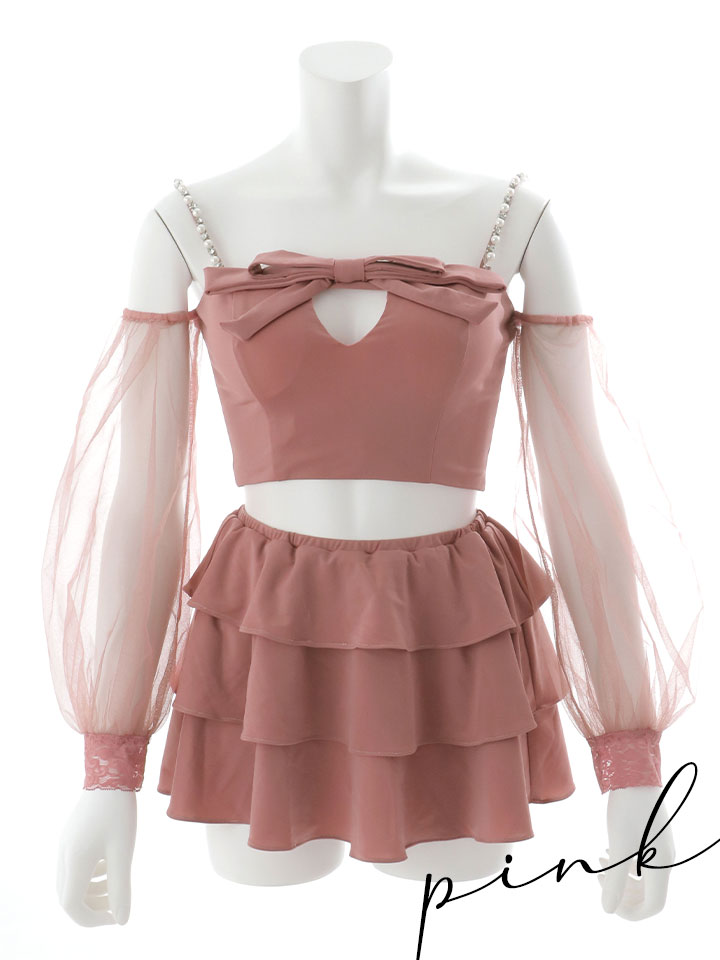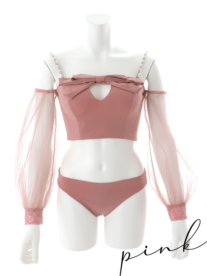 露出少なめ 体型カバー 素材 マテリアル リボンチュール バンドゥ くすみピンク 黒 くろ ブラック