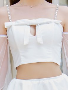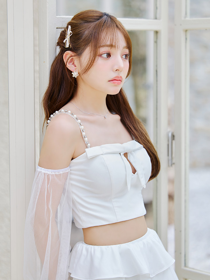 透け感のあるチュール素材が軽やかで、動くたびにエレガントに揺れる。