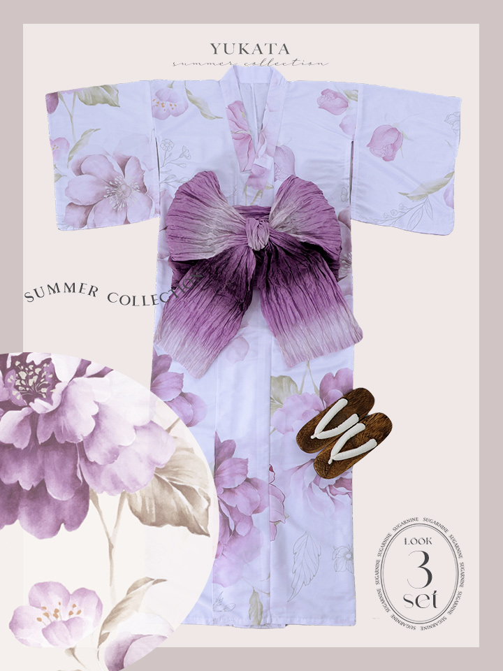 【即日発送】アンティークパープルローズ浴衣【浴衣3点セット 浴衣/帯/下駄】 [YMT] [Y-8062-sb-dzc-PL-F-25YI]