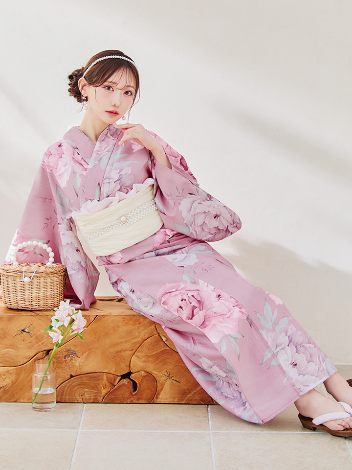 【即日発送】【浴衣】大人スウィート/ピンク地に大柄牡丹浴衣 【浴衣3点セット 浴衣/帯/下駄】 [YMT] [Y-7005-nz-P-F-25YI]