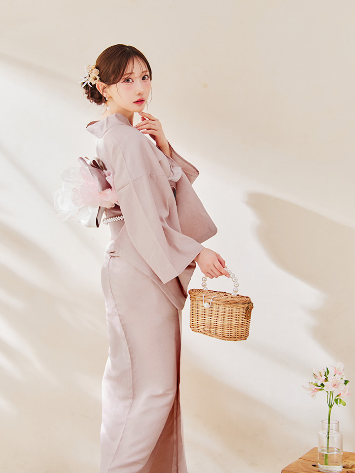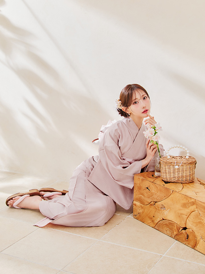 小物やヘアスタイルで遊ぶ無地の浴衣が初登場