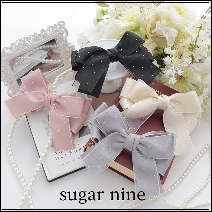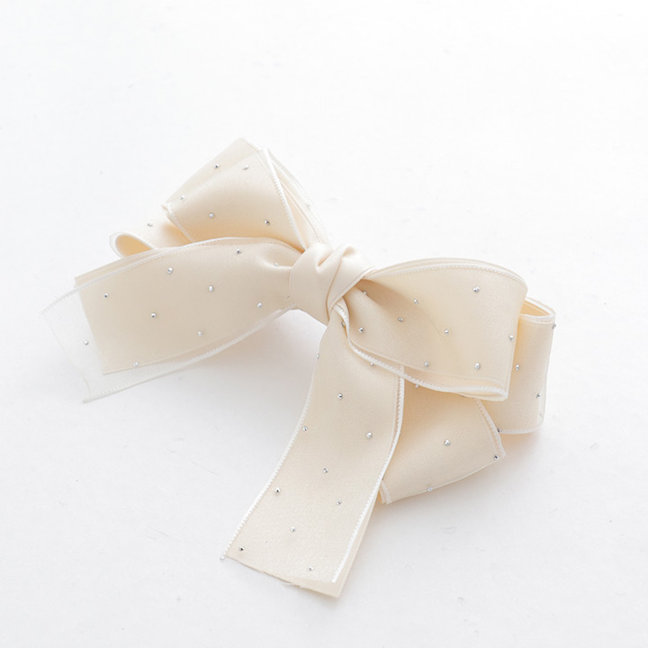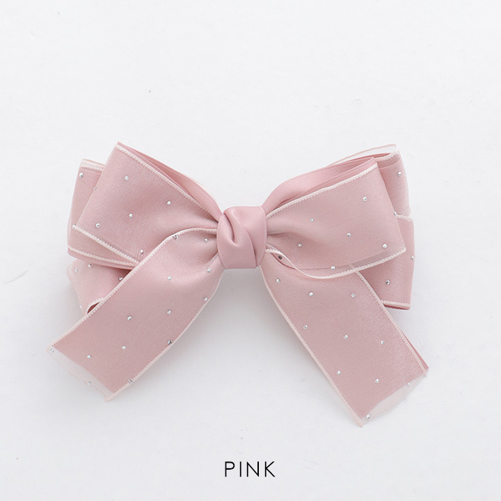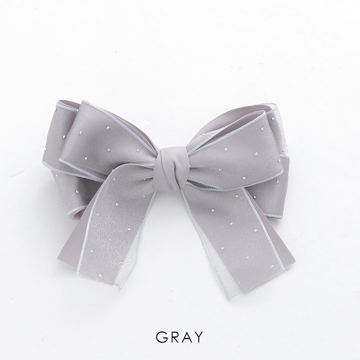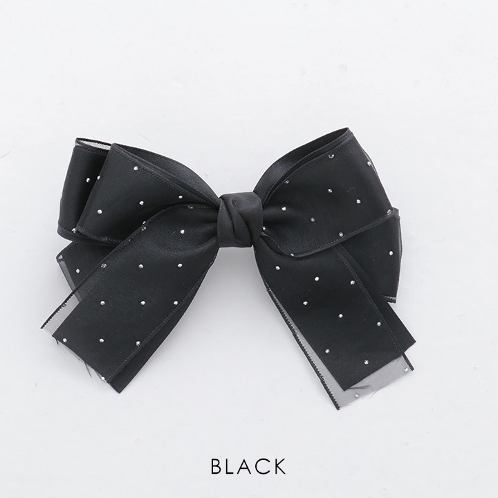 【アクセサリー:バレッタ】ビジューシフォンリボンバレッタ【4カラー】[OF02] [A2307472-250604-1]