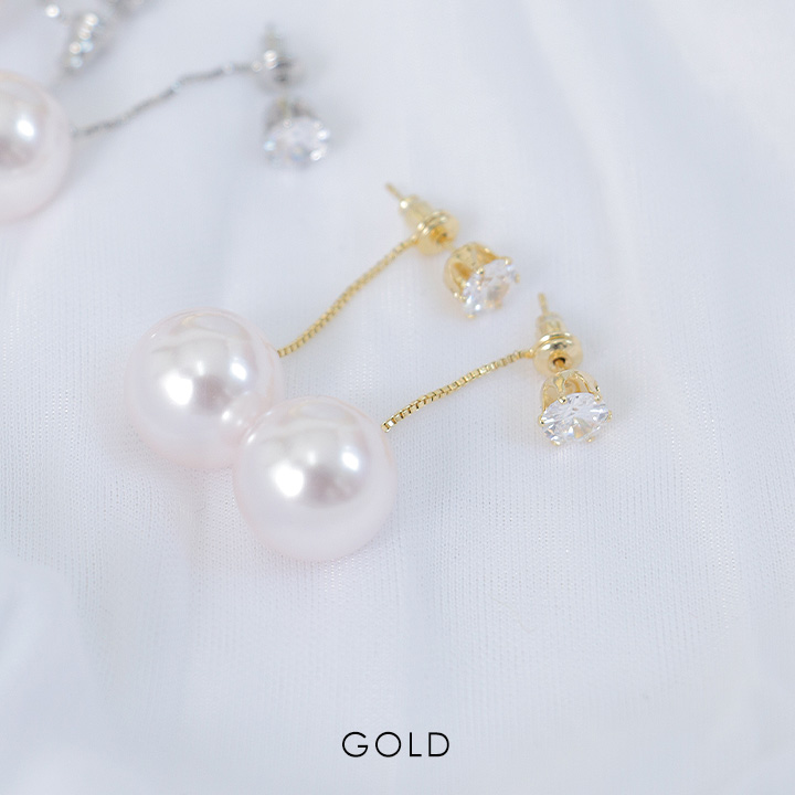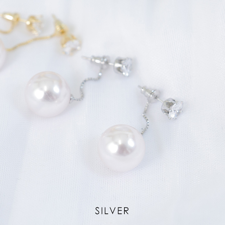 ビッグパールチェーンピアス【アクセサリー:ピアス】【Fサイズ/2カラー】[OF02]