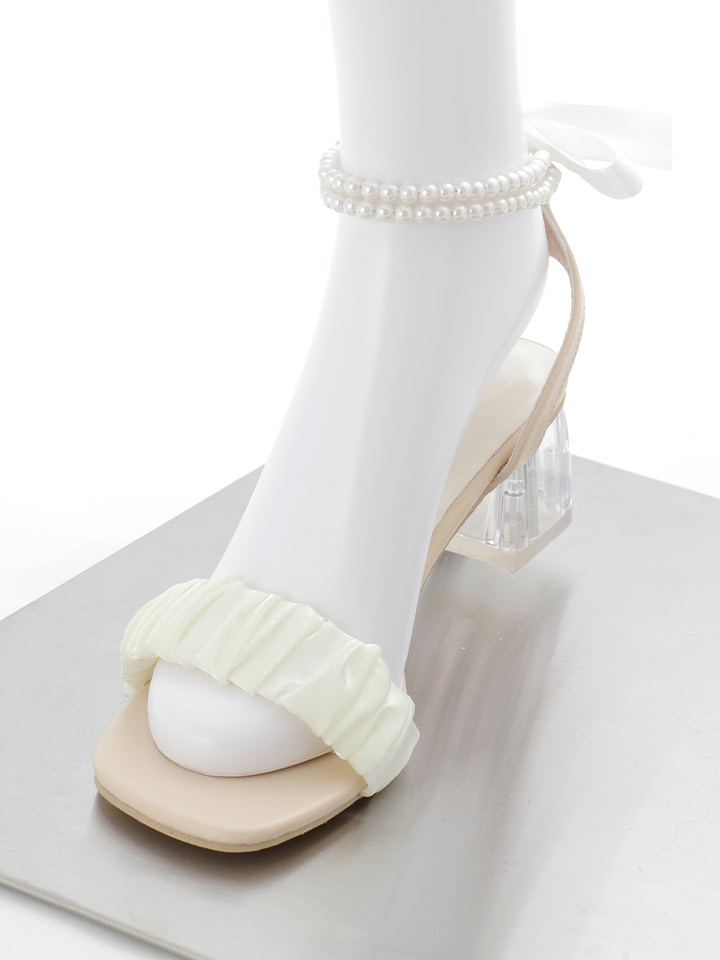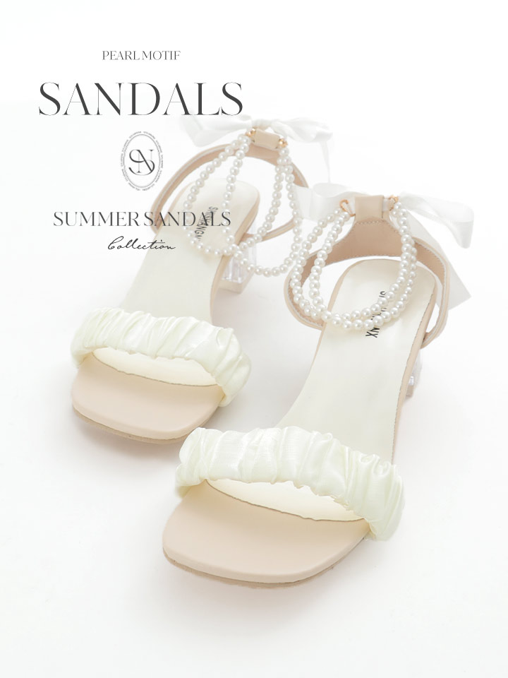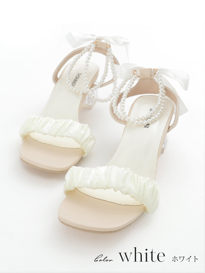 リボン付きパールストラップが足元をガーリーに演出するヒールサンダル♡