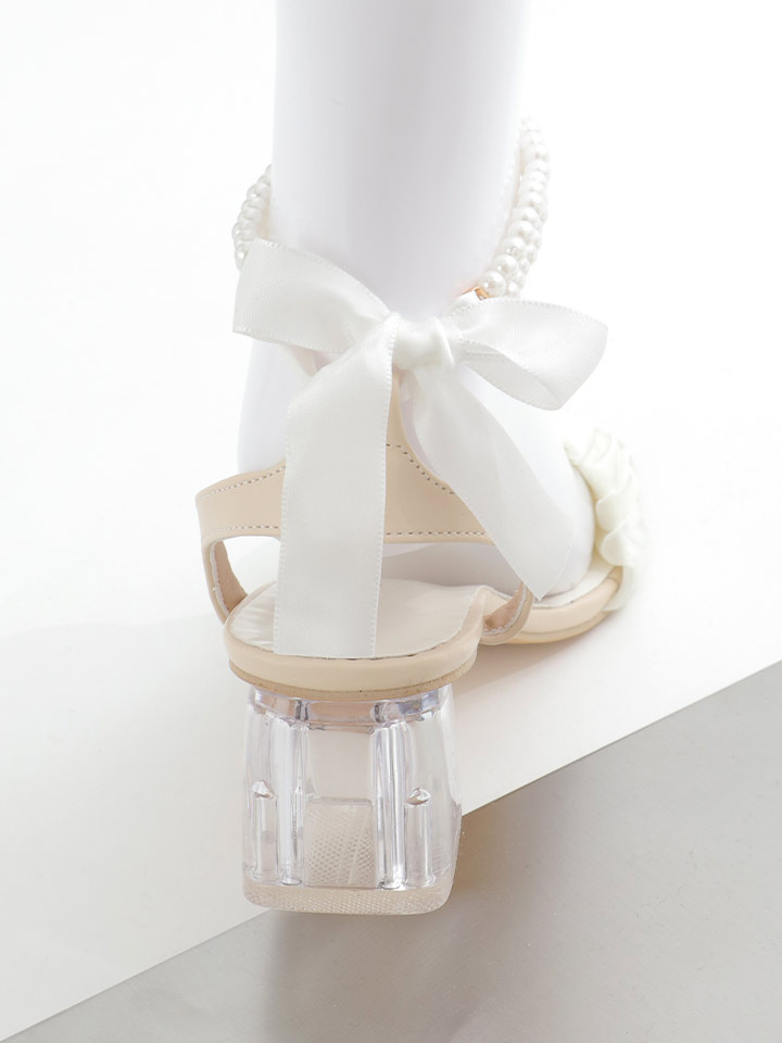 【水着小物:ビーチサンダル】リボン/ パール/ アンクルストラップ付き/ クリアヒール/ ビーチサンダル/ サマーシューズ[YMT] [MG-SN014-2506]
