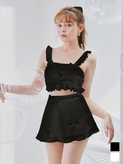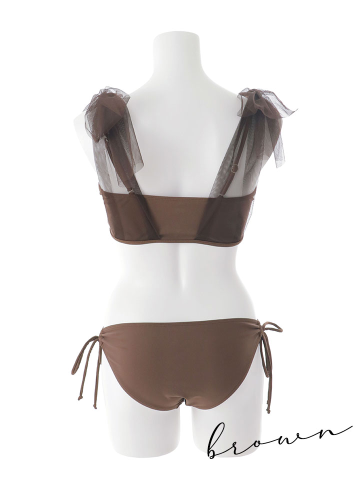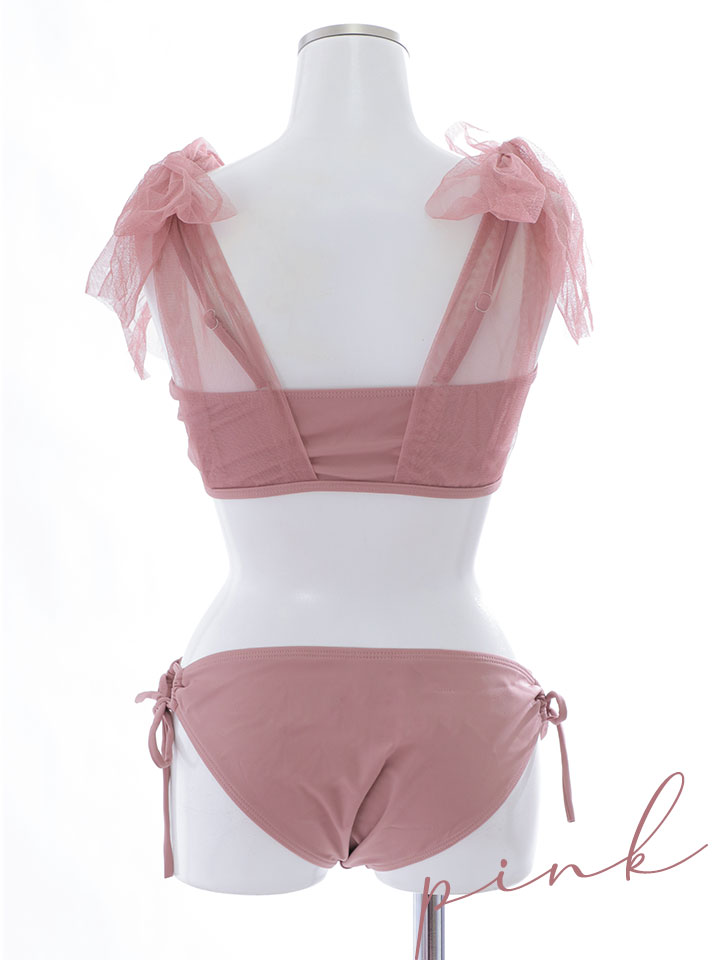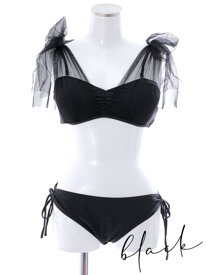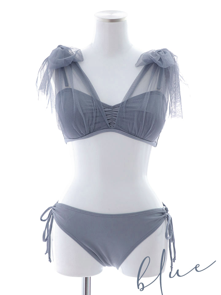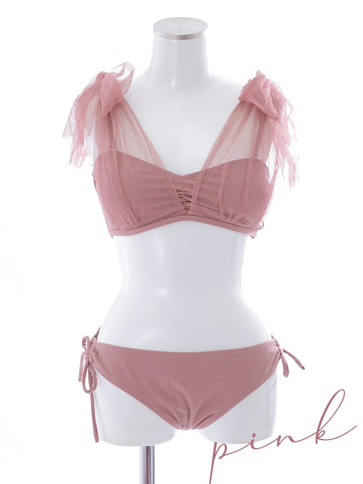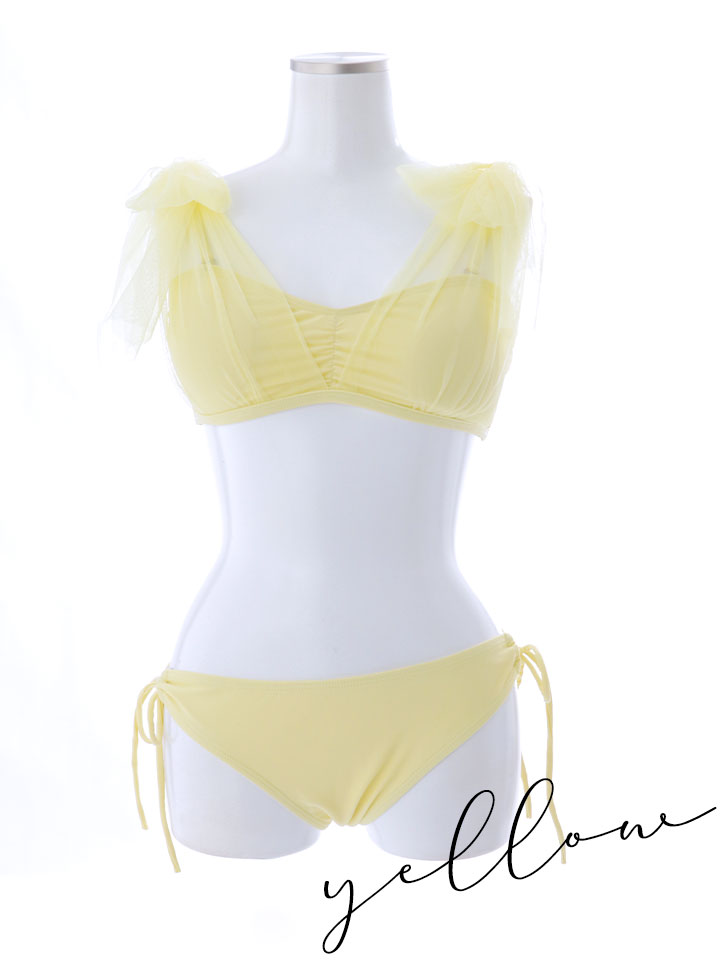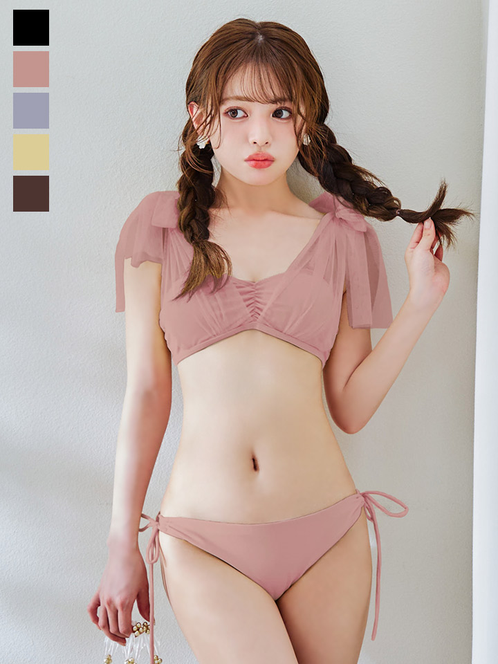 【即日発送】【ビキニ】【水着】チュールリボン バストアップ ビキニ 2点セット[YMT] [M208-BR-25PO]