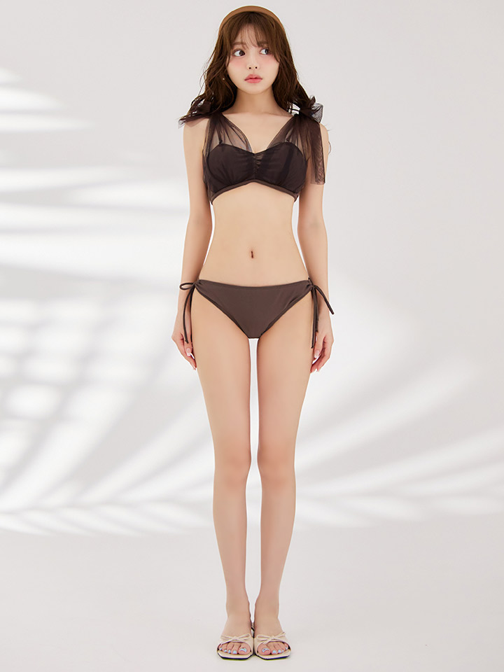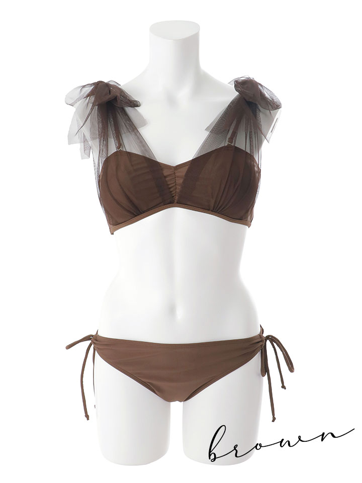 トレンドのシアー素材で取り外しができるアジャスター付きの肩紐がバストをしっかり持ち上げてくれます。