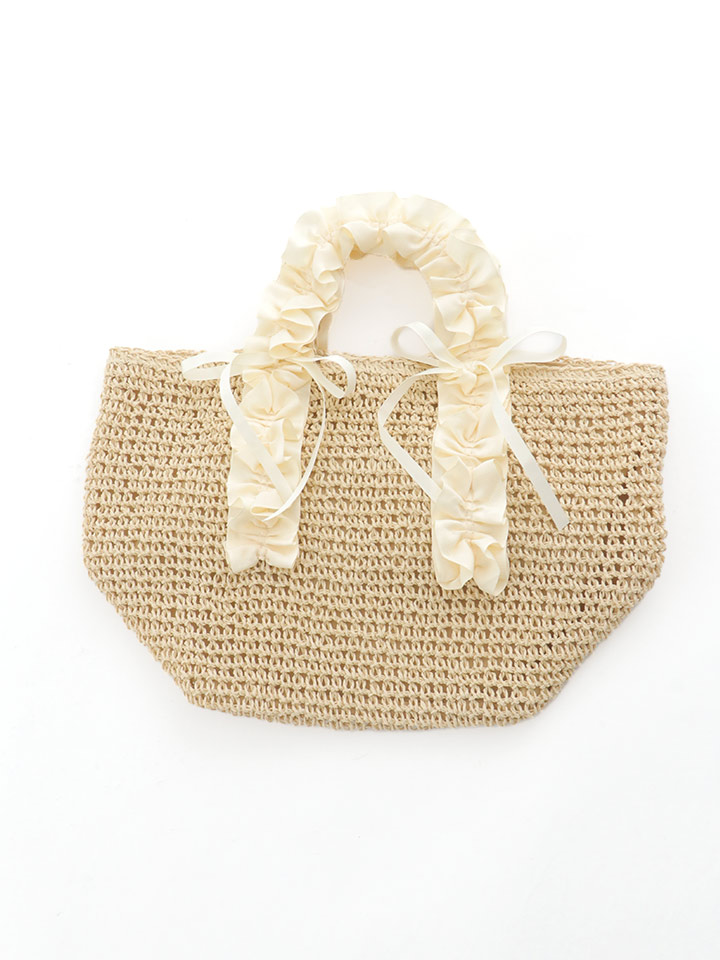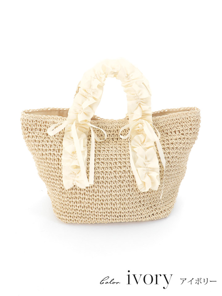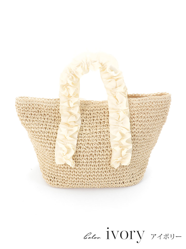 【バッグ】フリルハンドルカゴバッグ【Fサイズ/2カラー】[YMT] [B1053-250627-1]