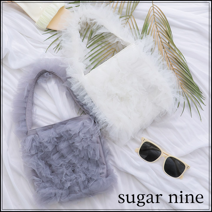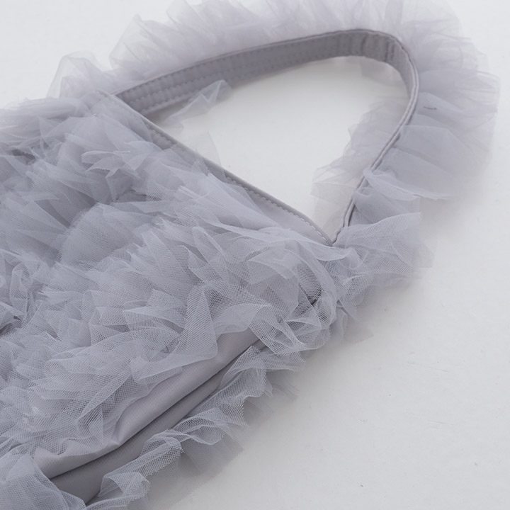 トレンドのチュール素材と、フリルデザインが可愛いミニバッグ