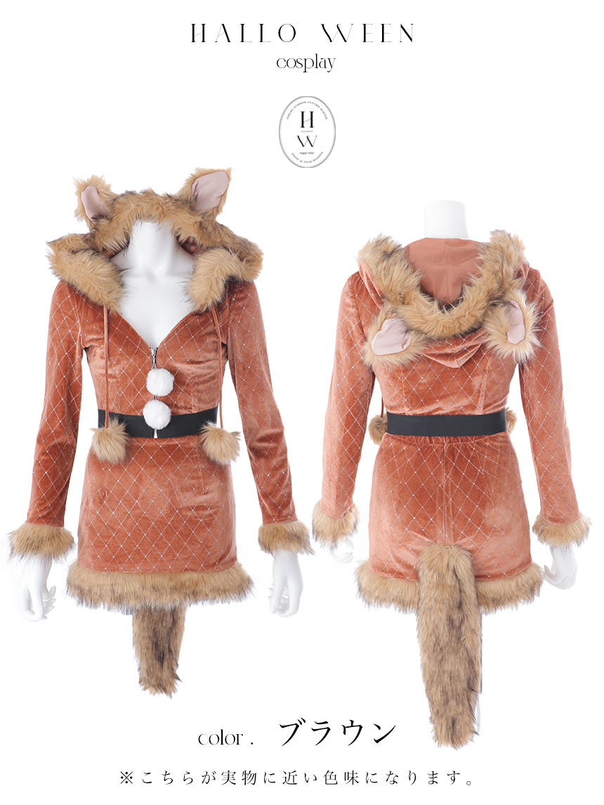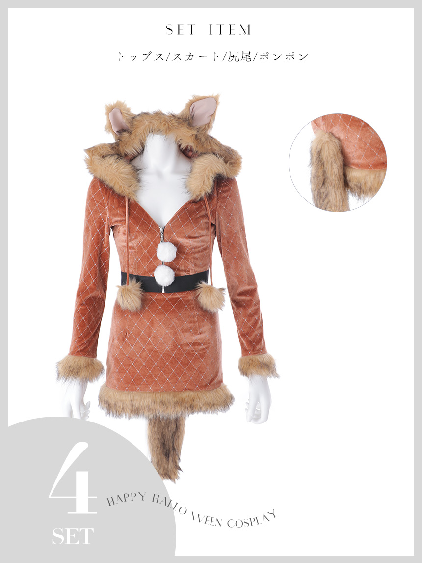 【即日発送】【送料無料】【ハロウィン】 キルティングビジューきつね 【コスプレ4点セット】 【XS-XLサイズ/1カラー】[HC03] [HW-248-YN-dzw-BR-25PO]