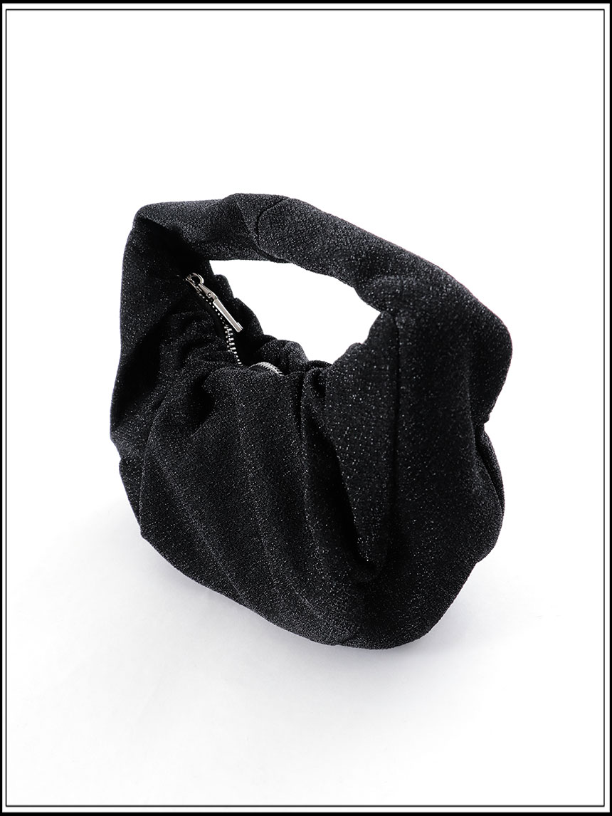 ラメ素材×クシュクシュデザインが可愛いハンドバッグ。