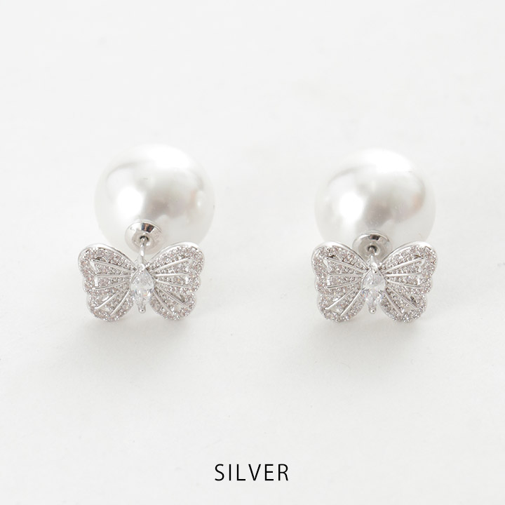 【アクセサリー:ピアス】バタフライ大粒パールピアス【1カラー】[OF02] [PI117-250731-1]