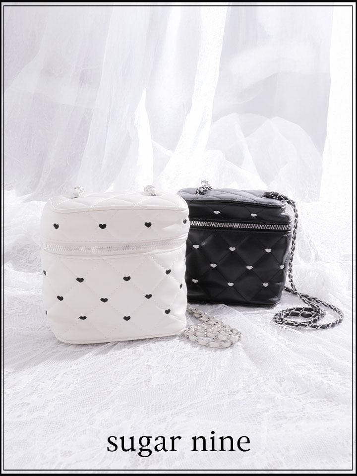 【バッグ】チェーンショルダーハートキルティングバニティバッグ【Fサイズ/2カラー】[OF02] [B1035-250729-1]