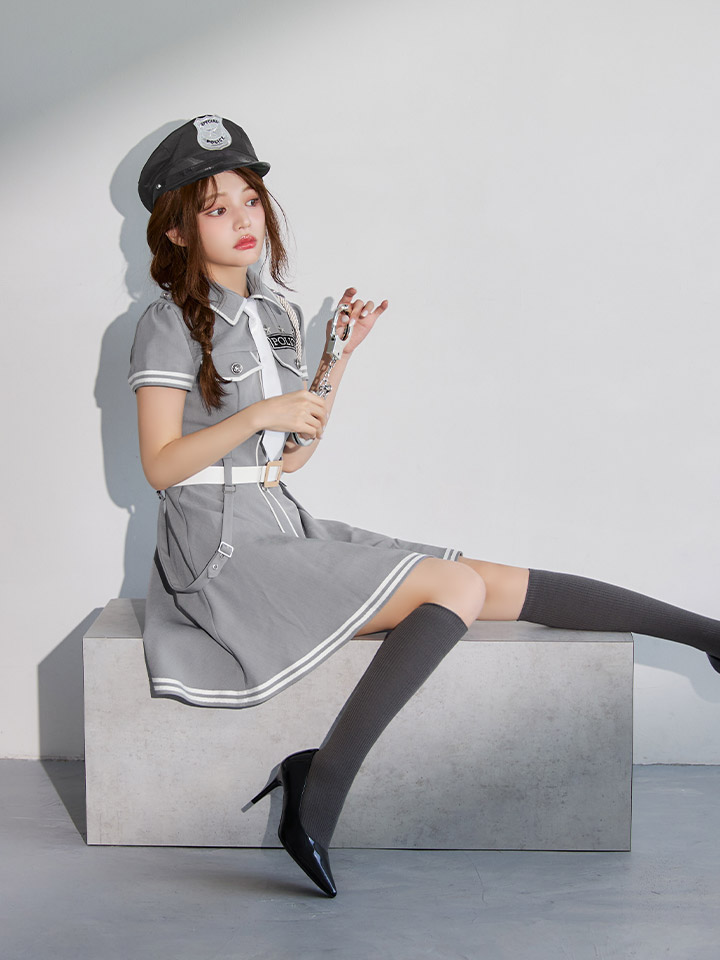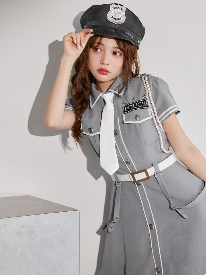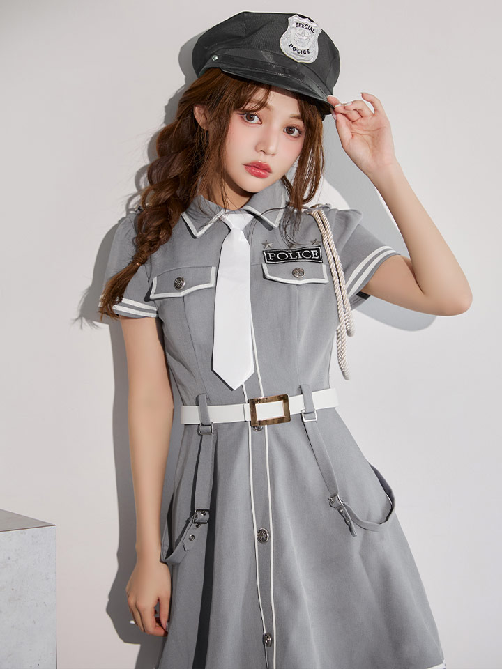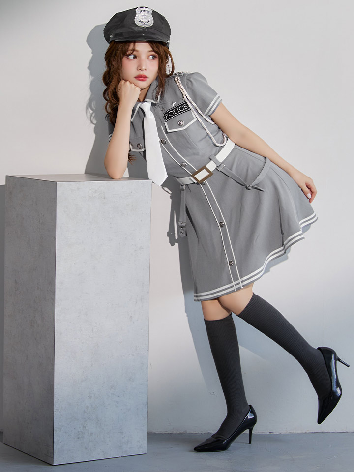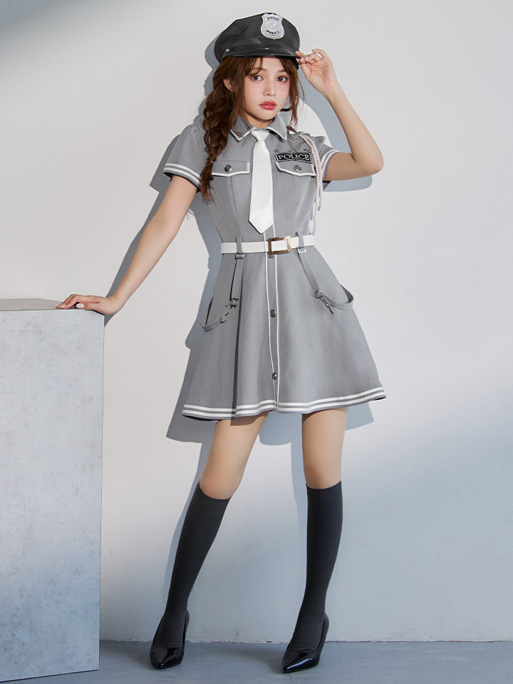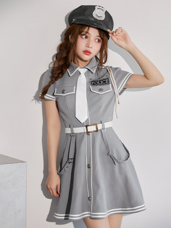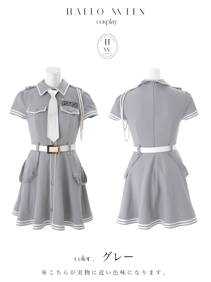 【即日発送】【ハロウィン】ポリスフレアミニワンピース【コスプレ4点セット】【S-XLサイズ/1カラー】[HC03] [HW-235-SB-dzk-GY-25PO]