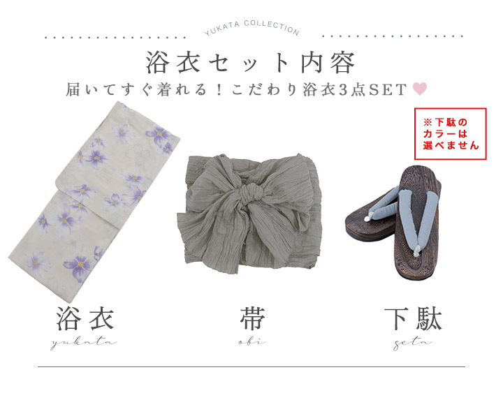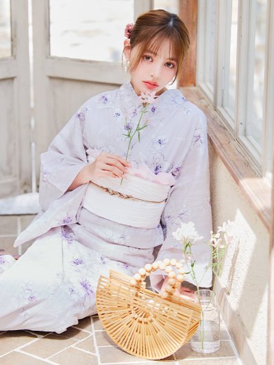 【即日発送】紫の花揺蕩う浴衣 【浴衣3点セット 浴衣/帯/下駄】 [YMT]