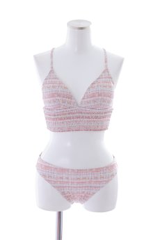 シンプルな形のビキニに存在感のあるツイード柄をプリントしました。