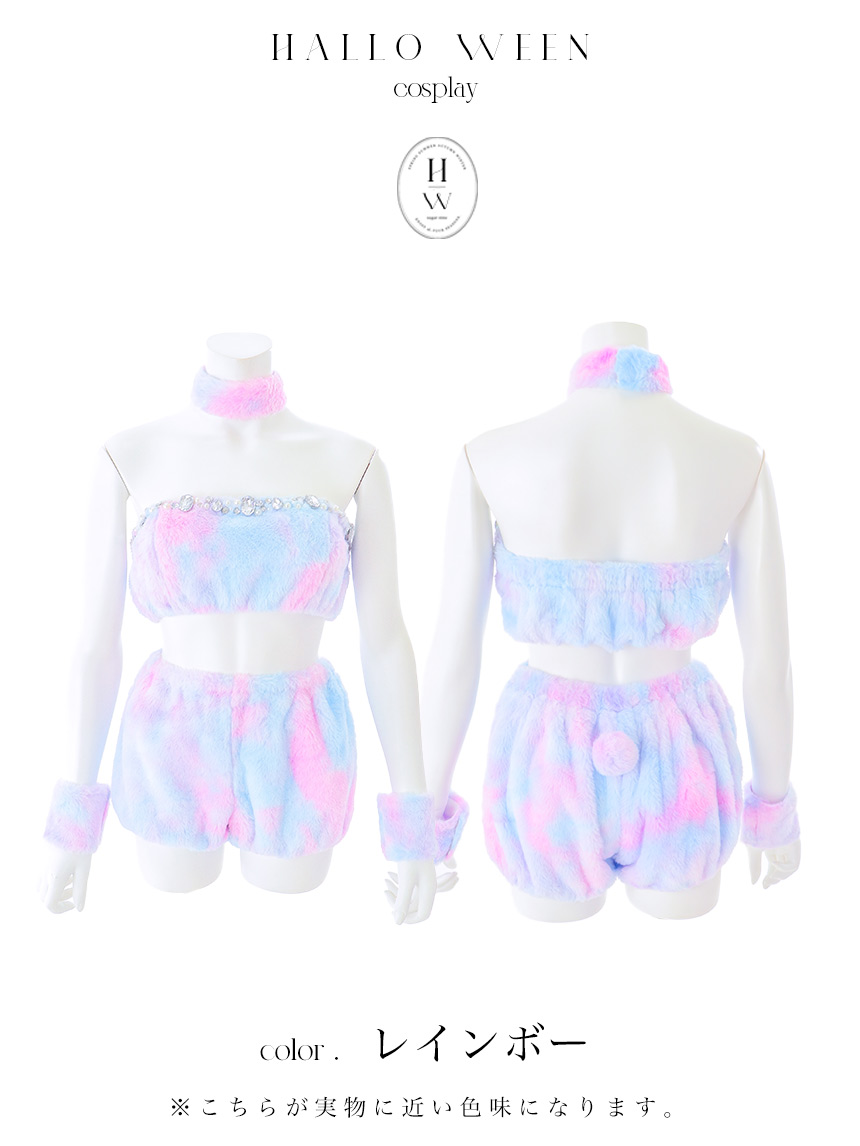 【即日発送】【ハロウィン】パステルもこもこバニー【コスプレ7点セット】【フリーサイズ/6カラー】[HC03]