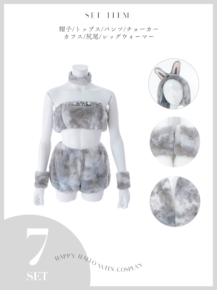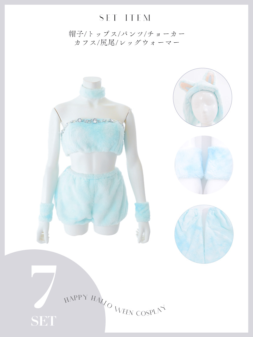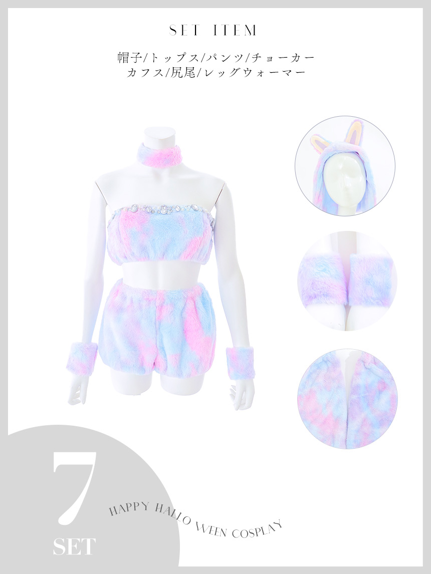 【即日発送】【ハロウィン】パステルもこもこバニー【コスプレ7点セット】【フリーサイズ/6カラー】[HC03] [HW-253-SB-dzwj-GY-25PO]