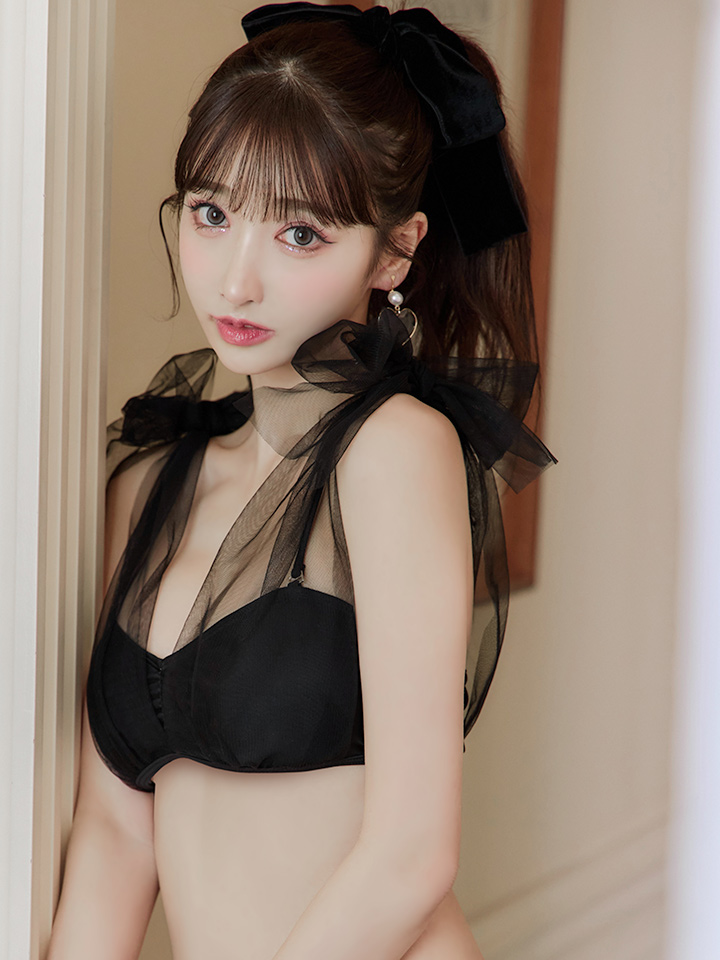 トレンドのシアー素材で取り外しができるアジャスター付きの肩紐がバストをしっかり持ち上げてくれます。