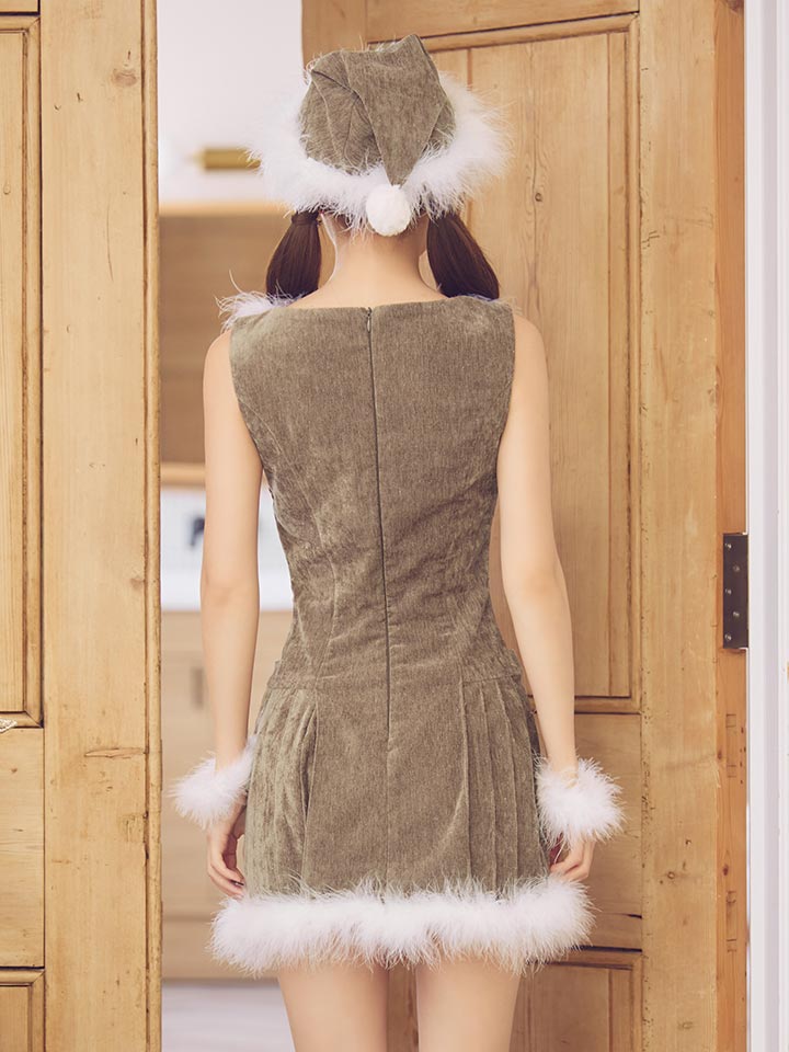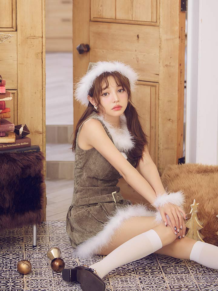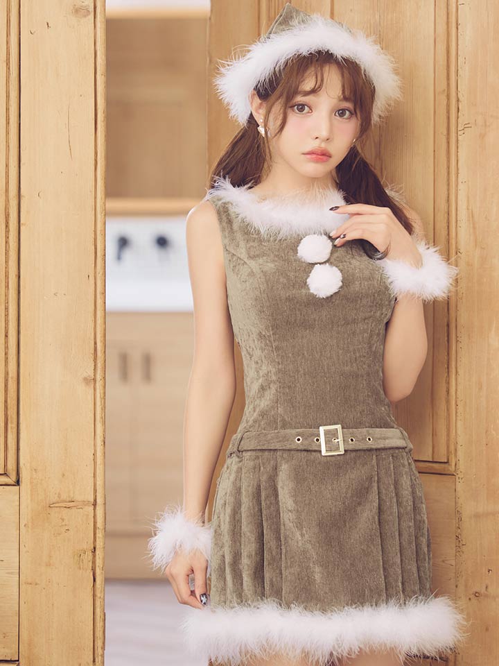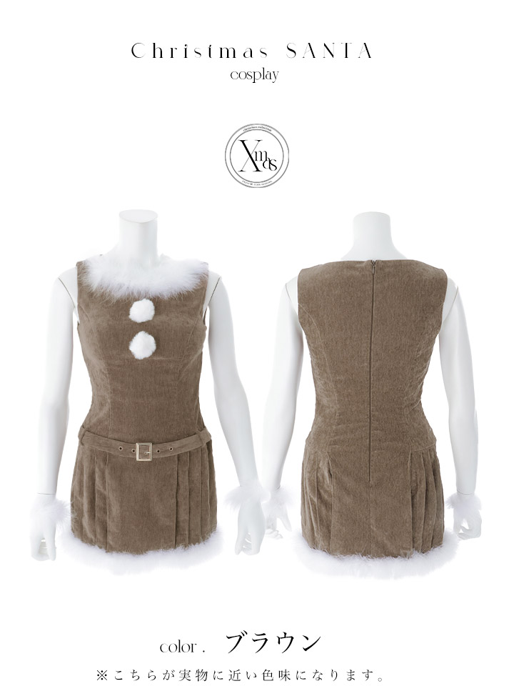 【即日発送】【送料無料!】【サンタ】ベルト付きファーサンタコスプレ【コスプレ4点セット】【XS-XLサイズ/3カラー】[OF04/OF04] [SS-208-YN-dzw-BR-25PO]