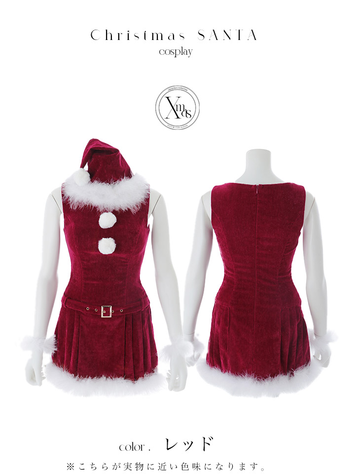 - > 【即日発送】【送料無料!】【サンタ】ベルト付きファーサンタコスプレ【コスプレ4点セット】【XS-XLサイズ/3カラー】[OF04/OF04]