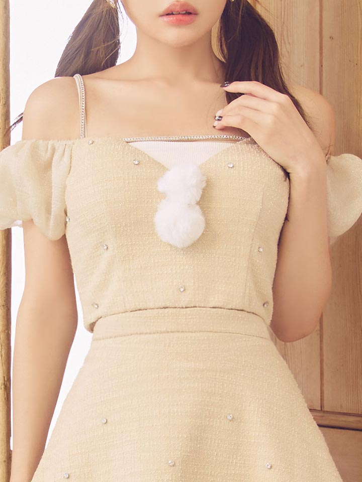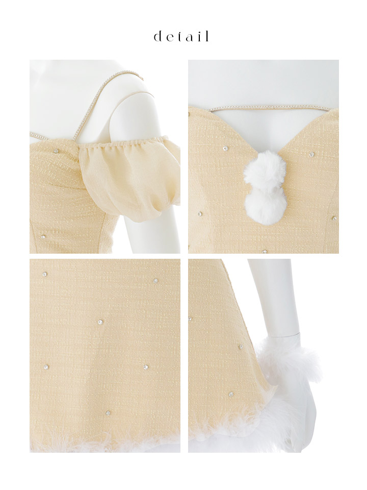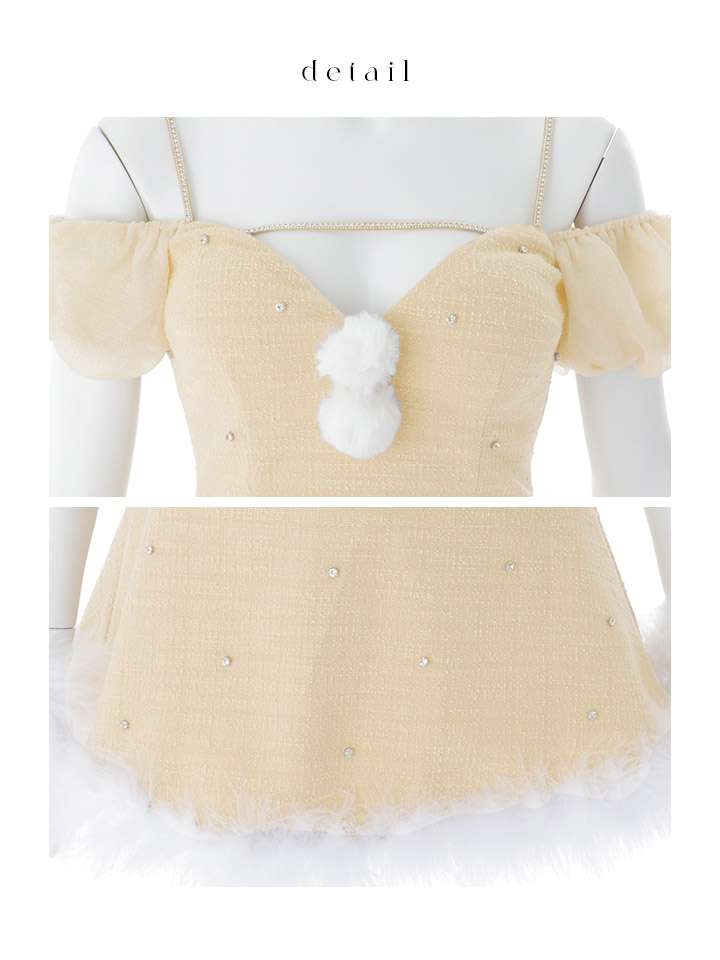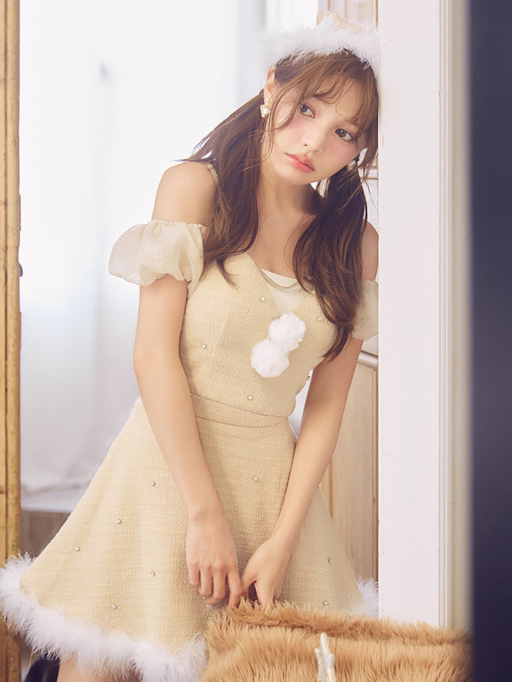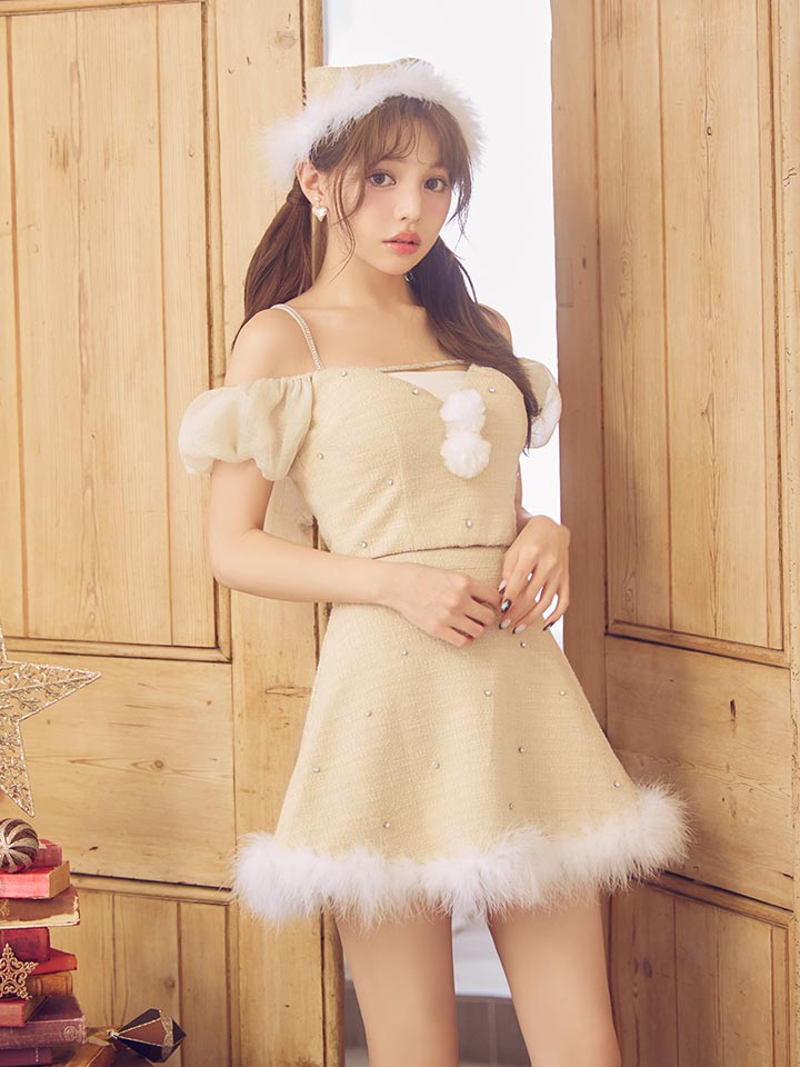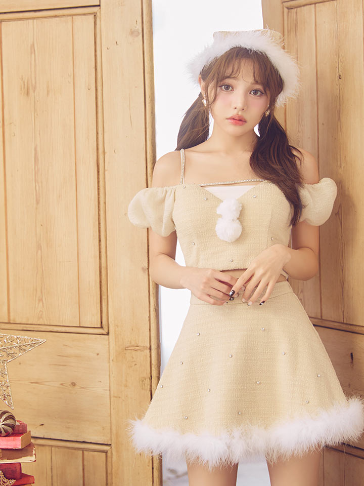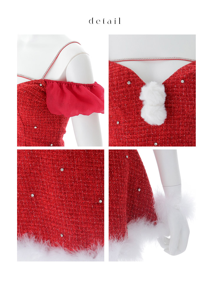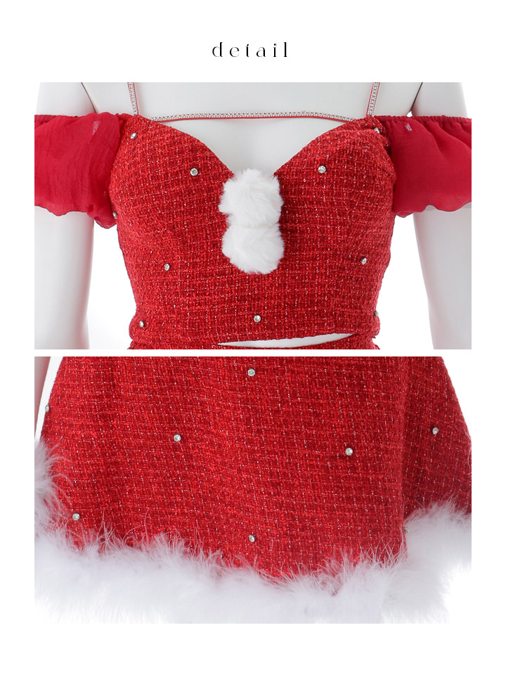 レッド 赤 スカート ミニスカート フレアスカート 胸盛り ファー 肩出し