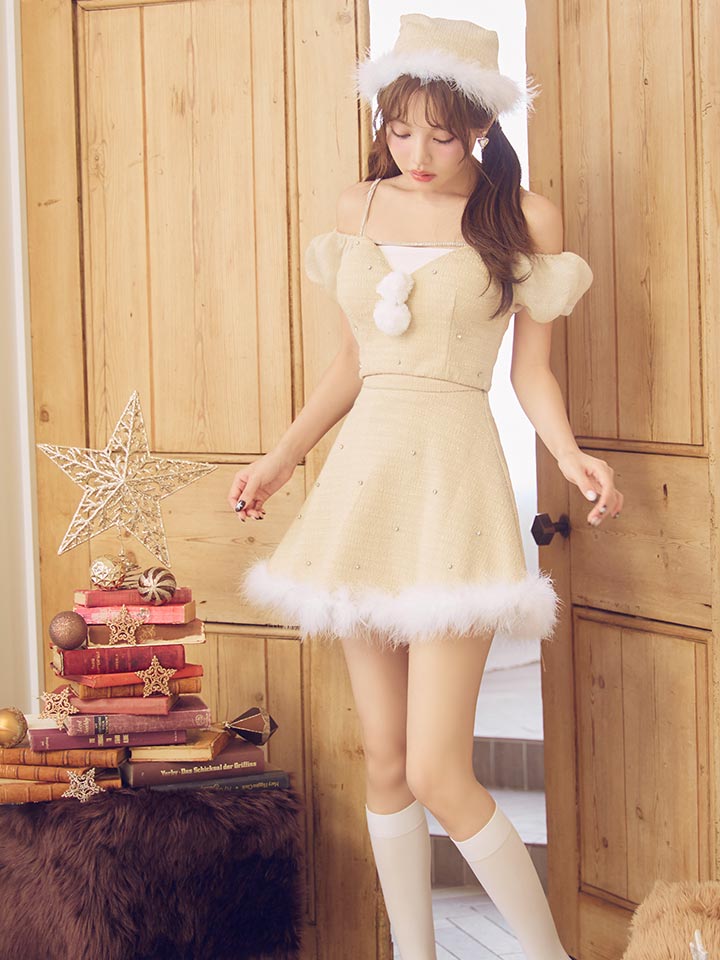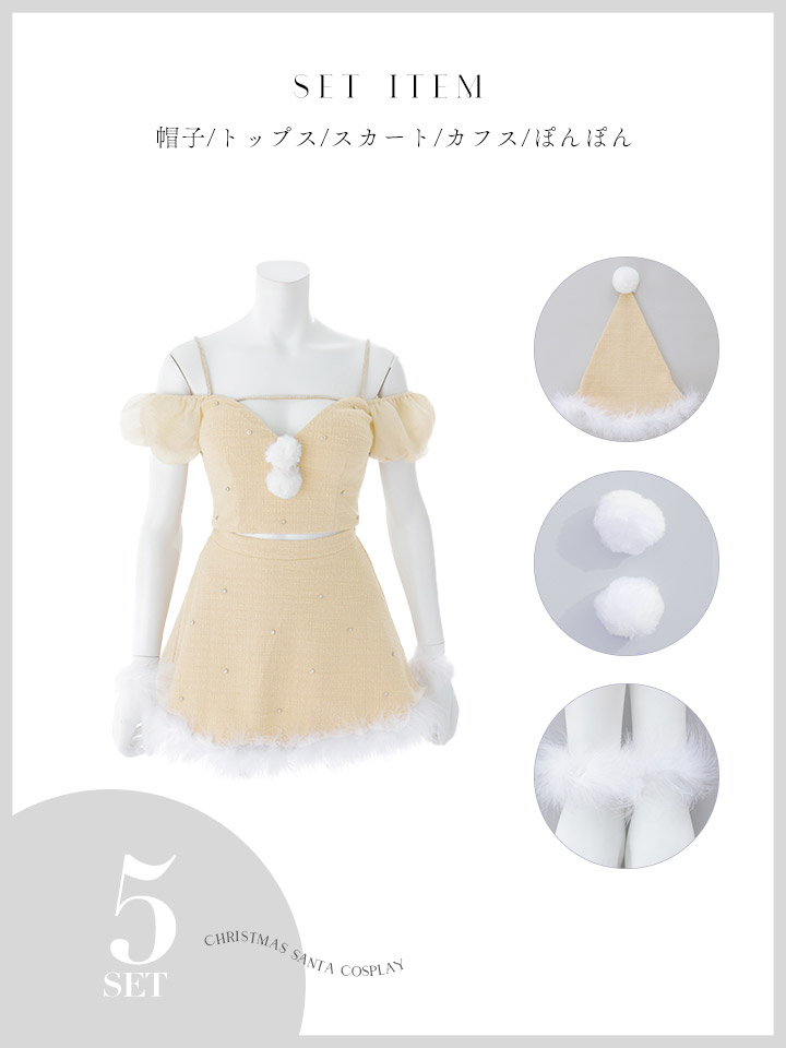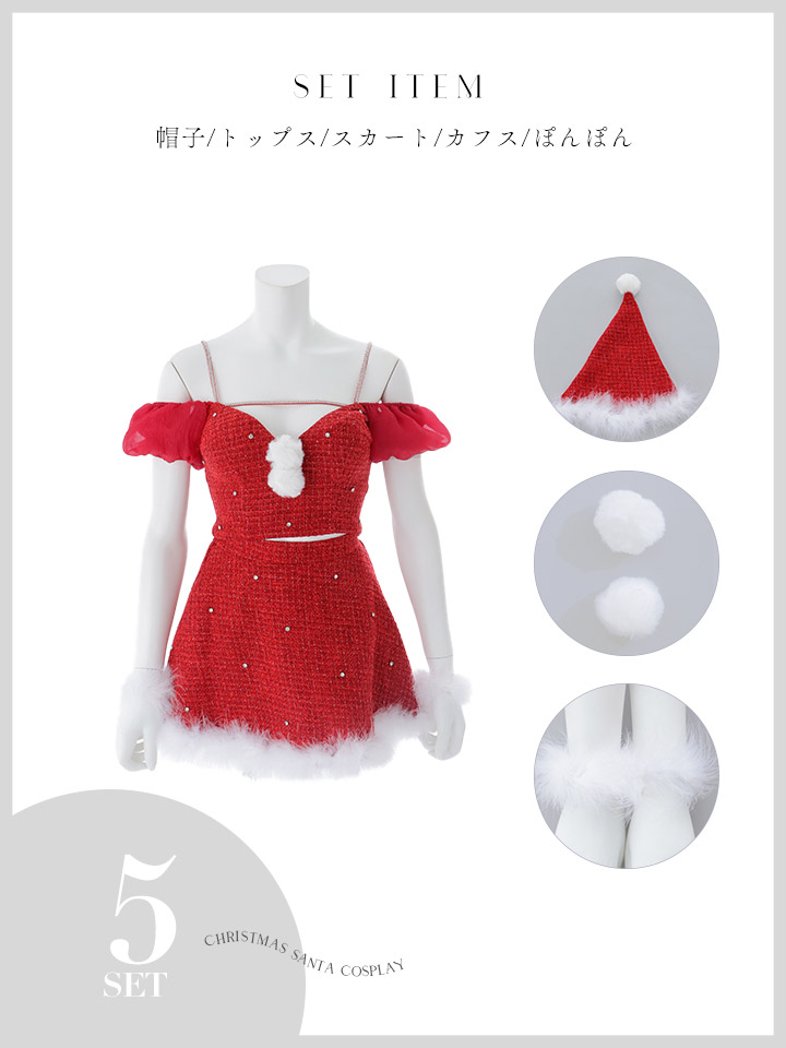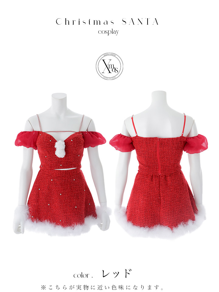 - > 【即日発送】【送料無料!】【サンタ】パフスリーブセットアップサンタコスプレ【コスプレ5点セット】【XS-Mサイズ/2カラー】[OF04]