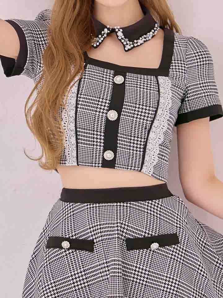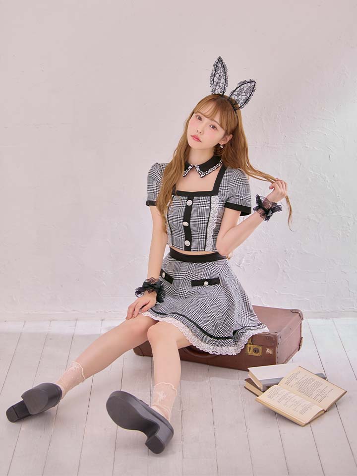 バニー うさぎ ラビット 兎 チェック ブラック 黒 ギンガムチェック セットアップ ツーピース 2ピース 甘い あざと コンカフェ スイート あまい 半袖 ワンピース