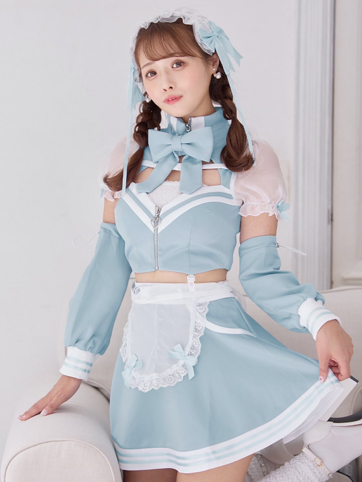 メイド リボン 甘い あざと コンカフェ スイート あまい フレア ミニ セットアップ セクシー コスプレ