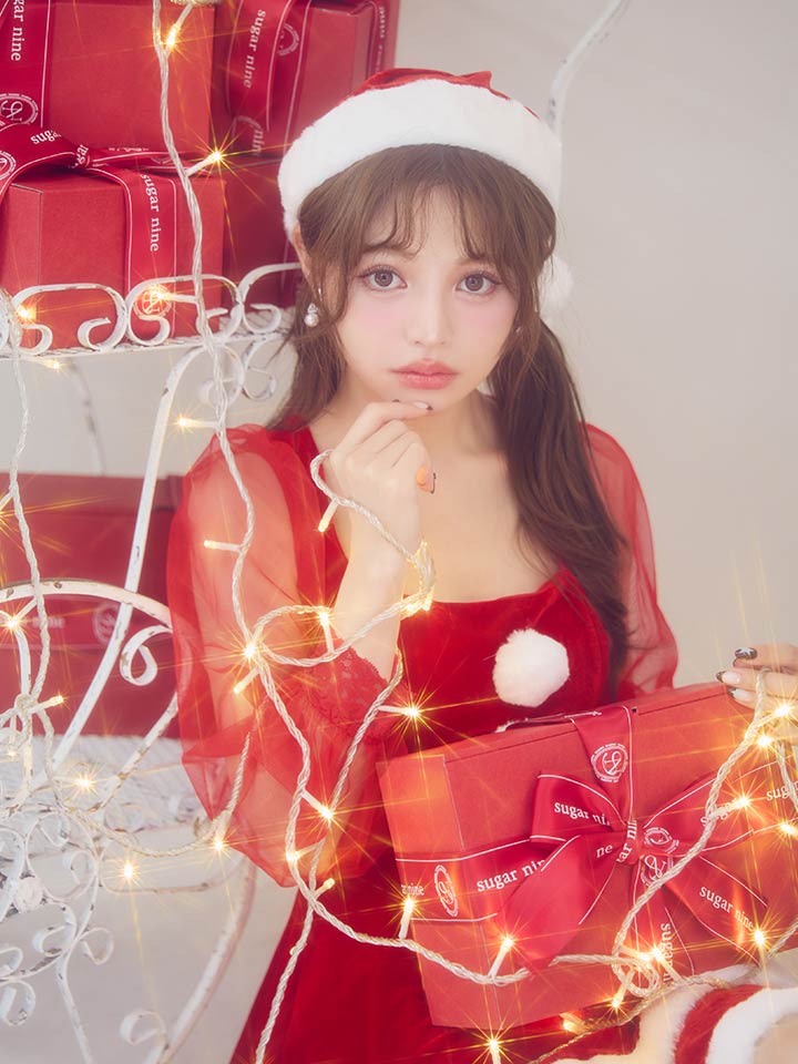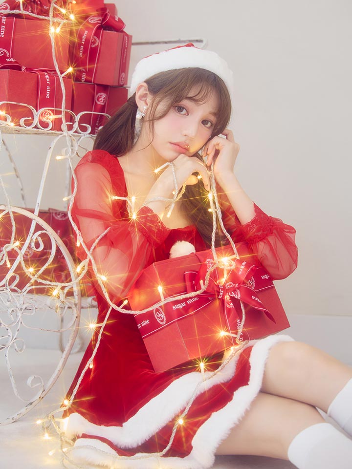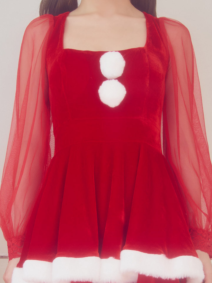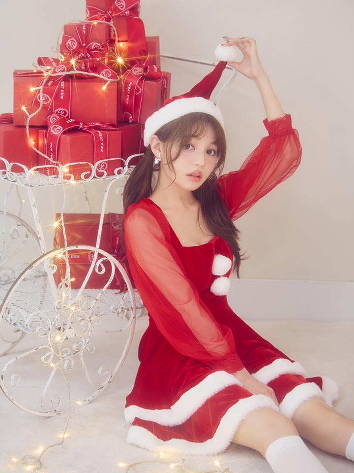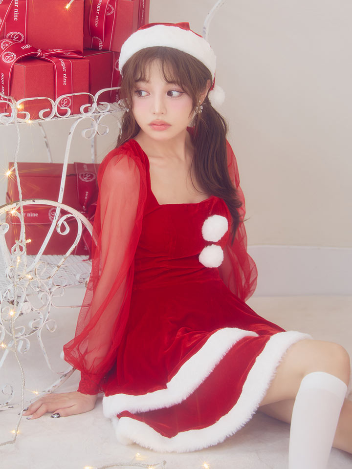 #チュール #ワンピース #長袖 #フリル #シアー #ベロア #フレア #クリスマス #パーティ #サンタコス #サンタさん