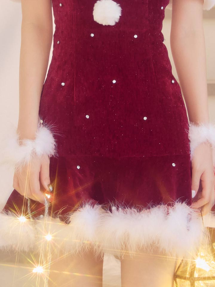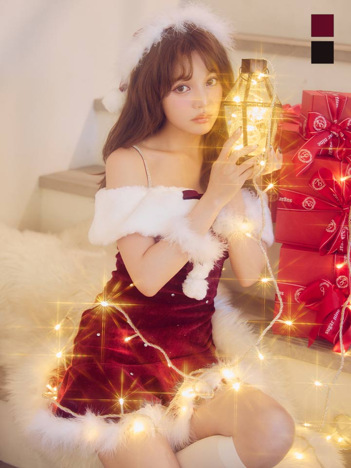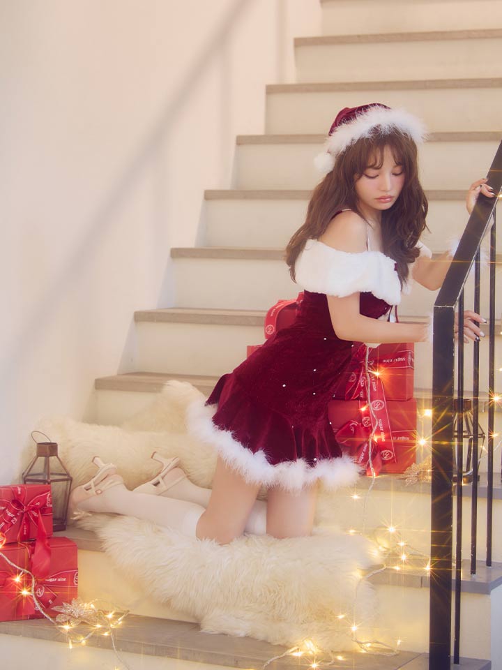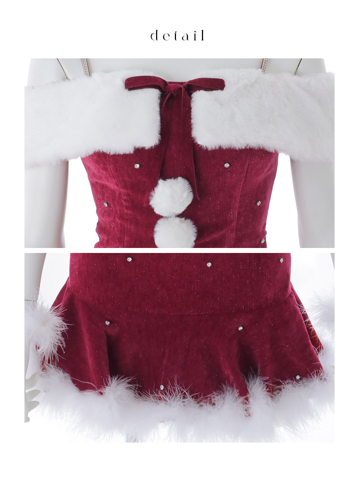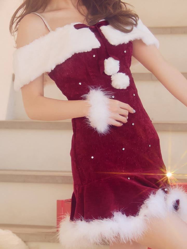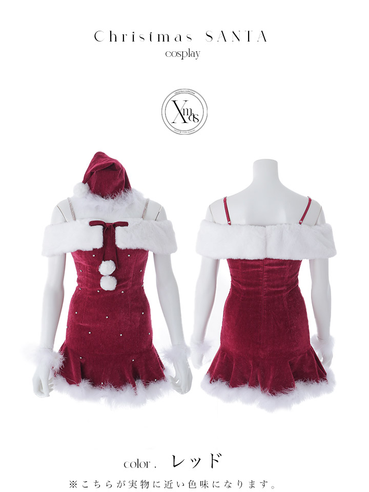- > 【即日発送】【サンタ】オフショルファービジューマーメイドサンタコスプレ【コスプレ4点セット】【XS-Lサイズ/2カラー】[OF04]