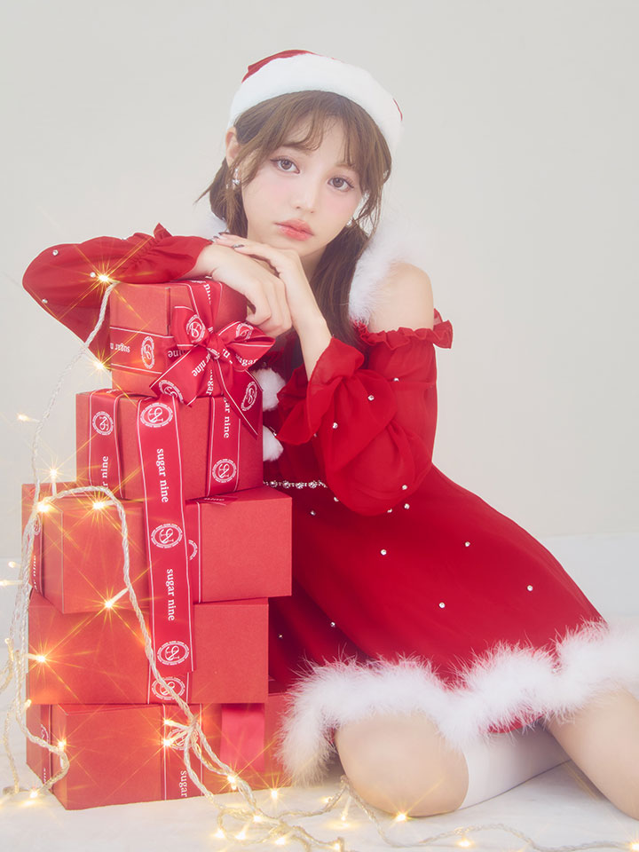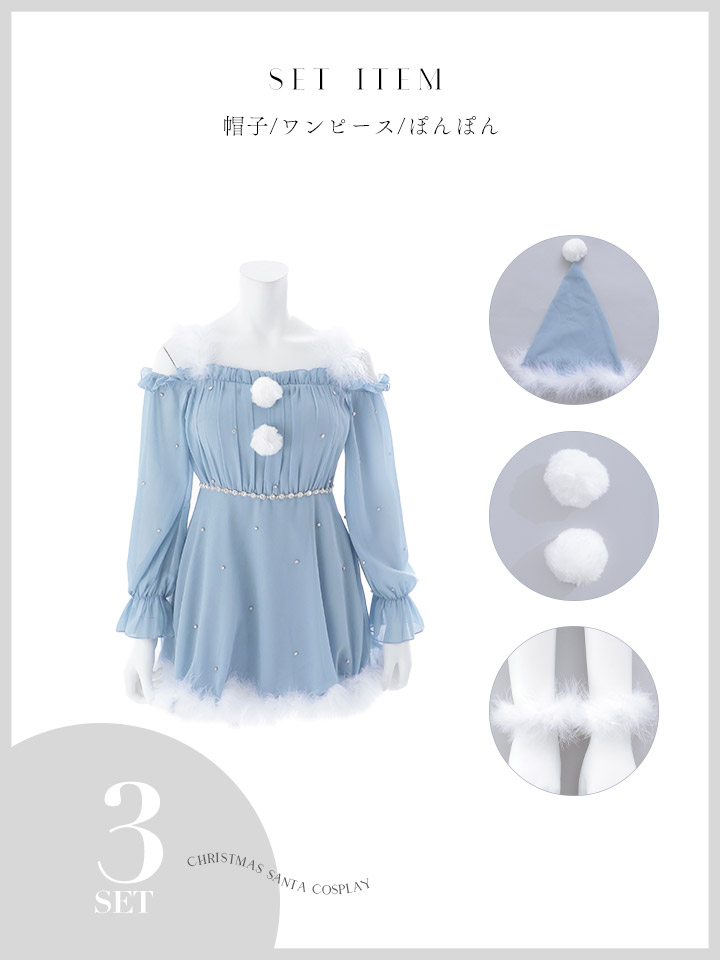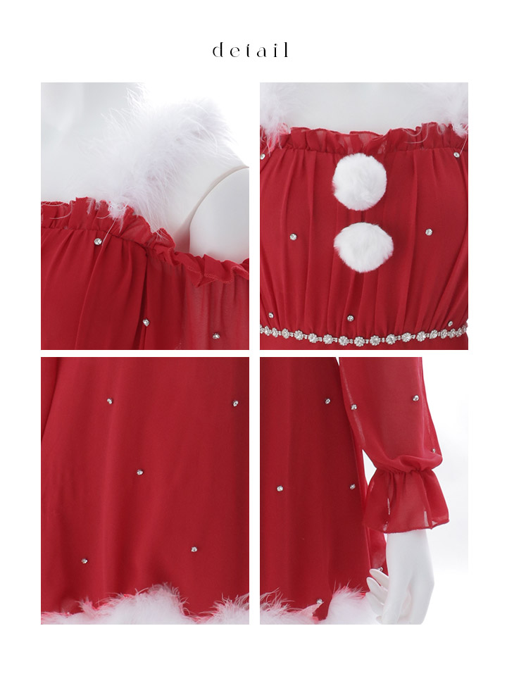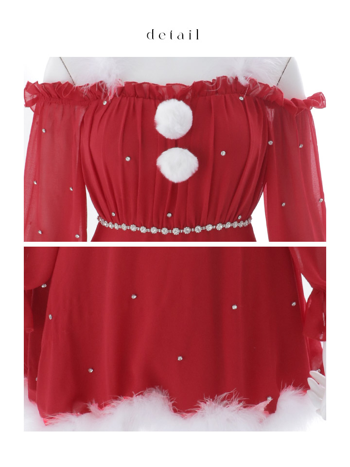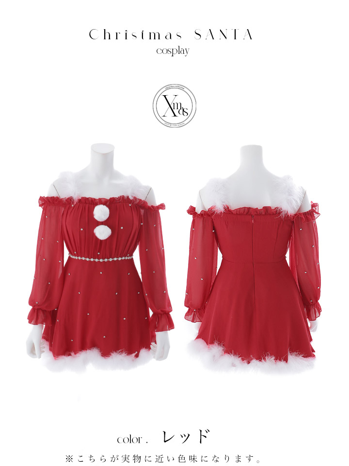 - > 【即日発送】【サンタ】袖付きシフォンワンピースビジューサンタコスプレ【コスプレ3点セット】【S-Mサイズ/2カラー】[OF04]