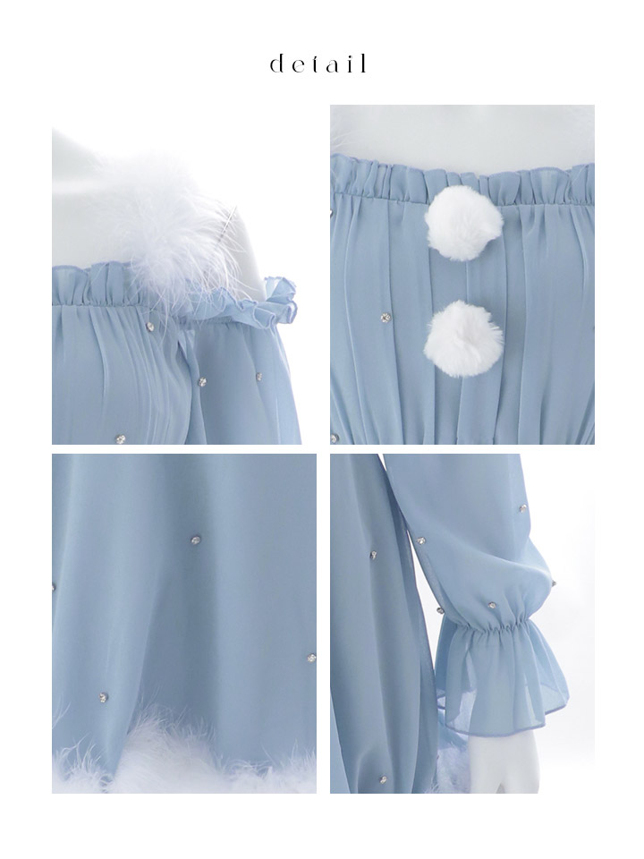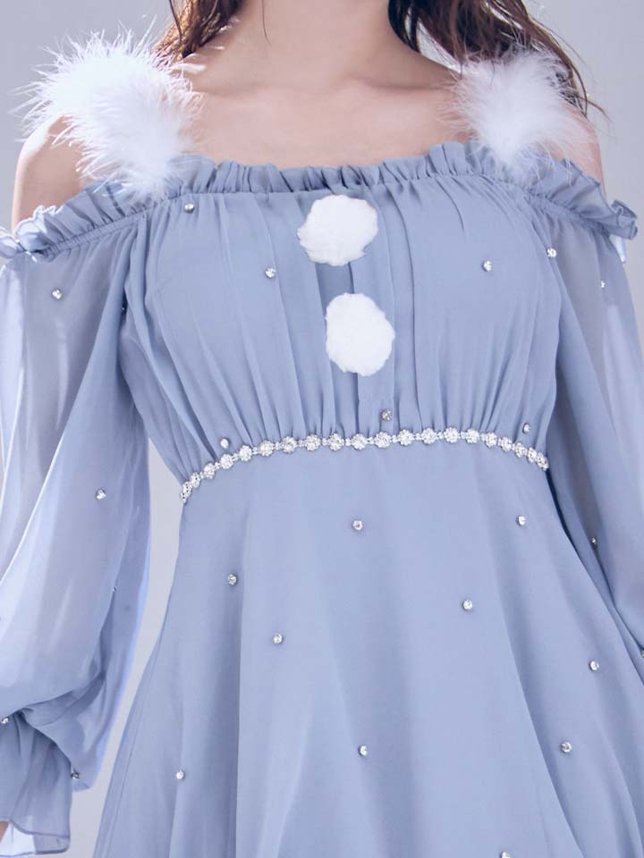 オフショル 長袖 Aライン スカート ミニスカート フレアスカート 胸盛り シフォン