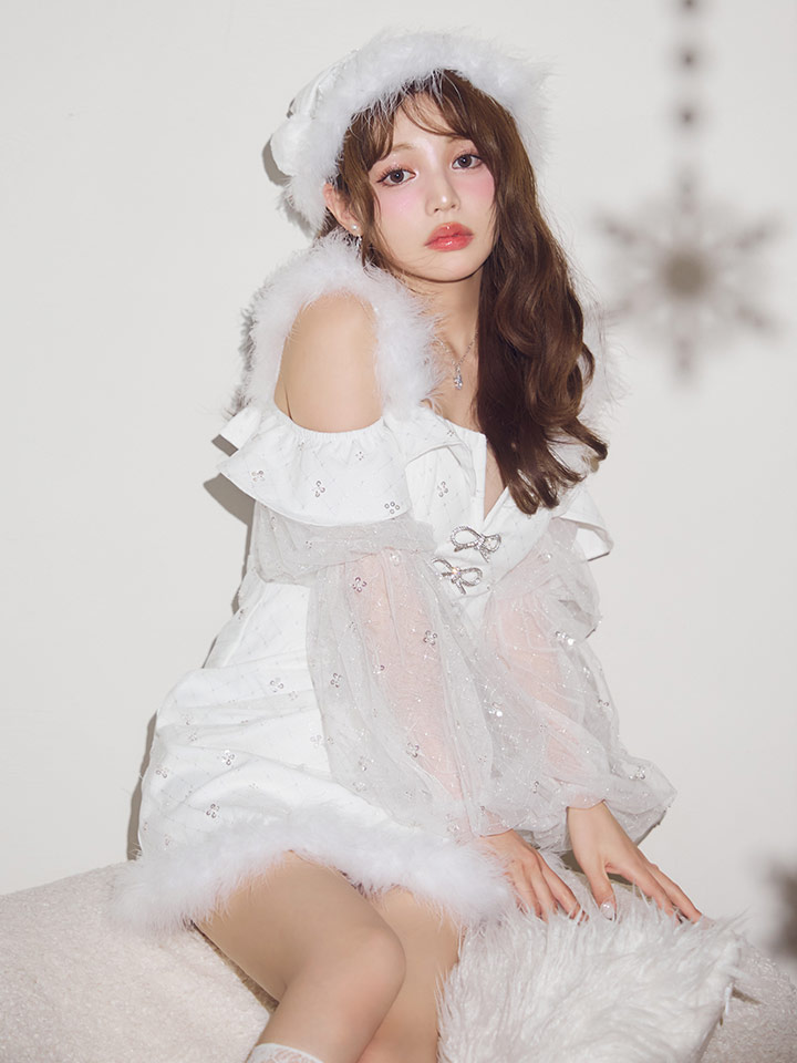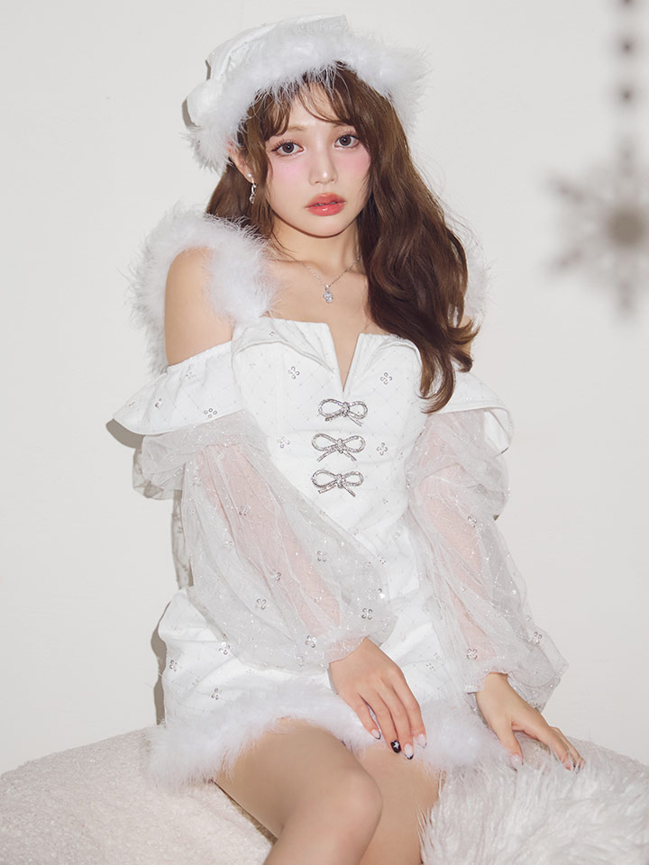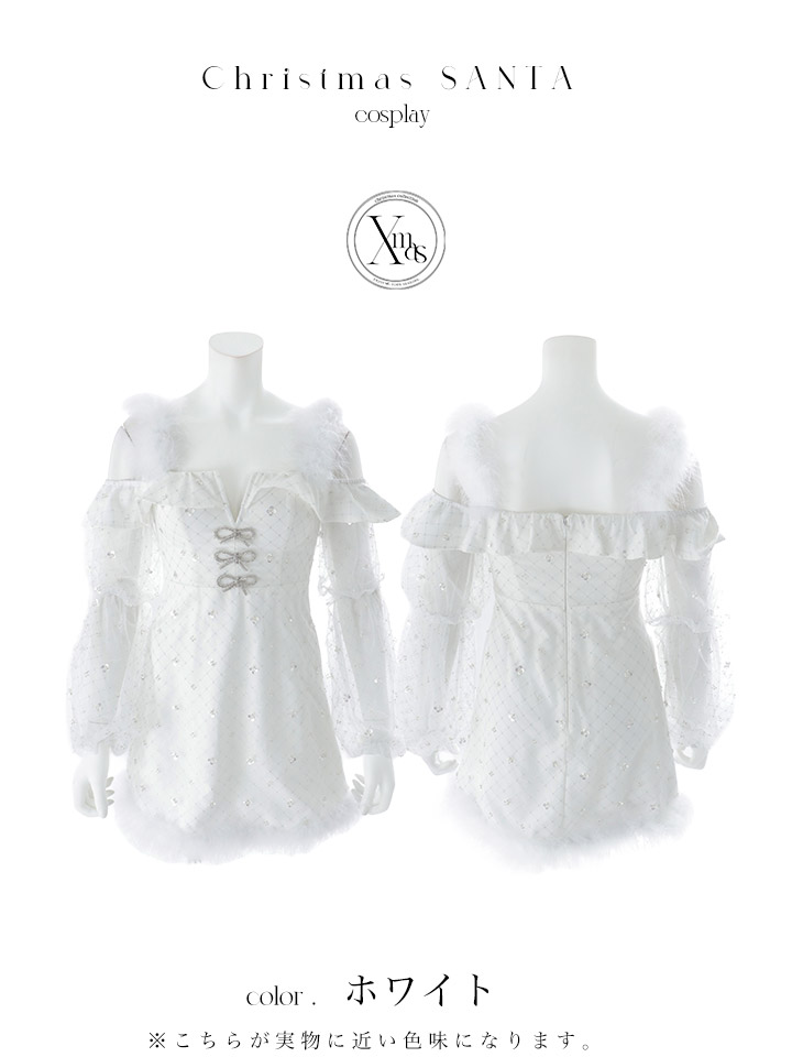- > 【即日発送】【送料無料!】【サンタ】オフショルチュール袖リボンサンタコスプレ【コスプレ2点セット】【XS-Lサイズ/1カラー】[OF01]