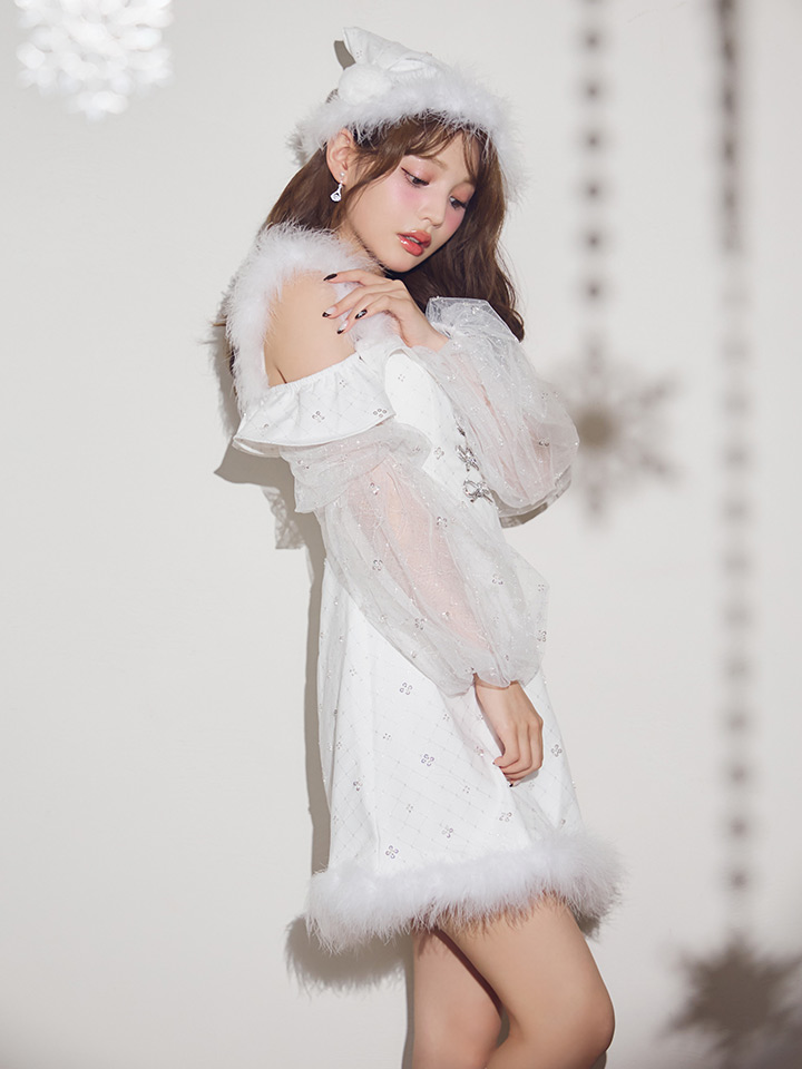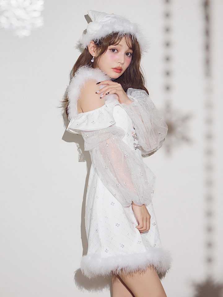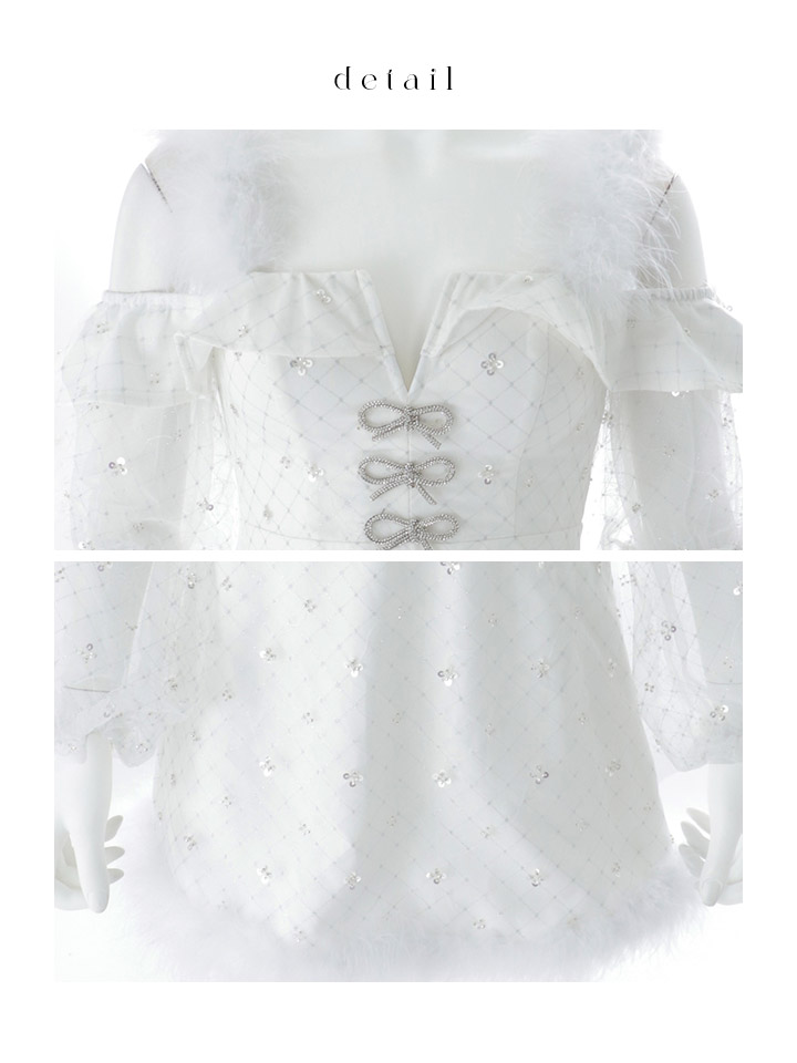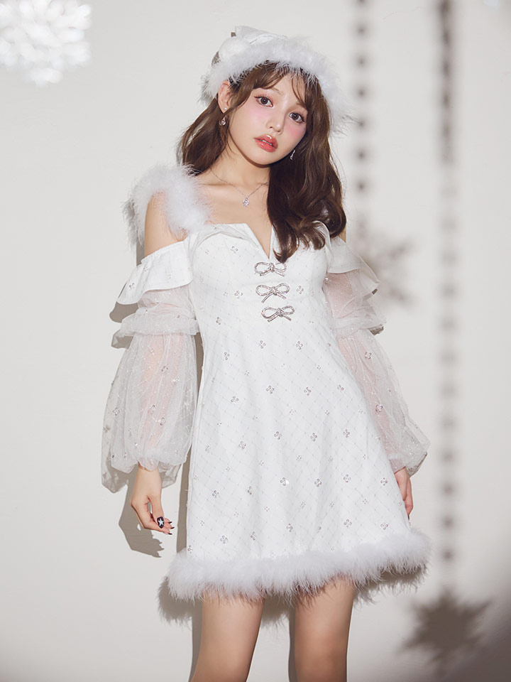 オフショルダーとチュール袖でトレンド感満載。