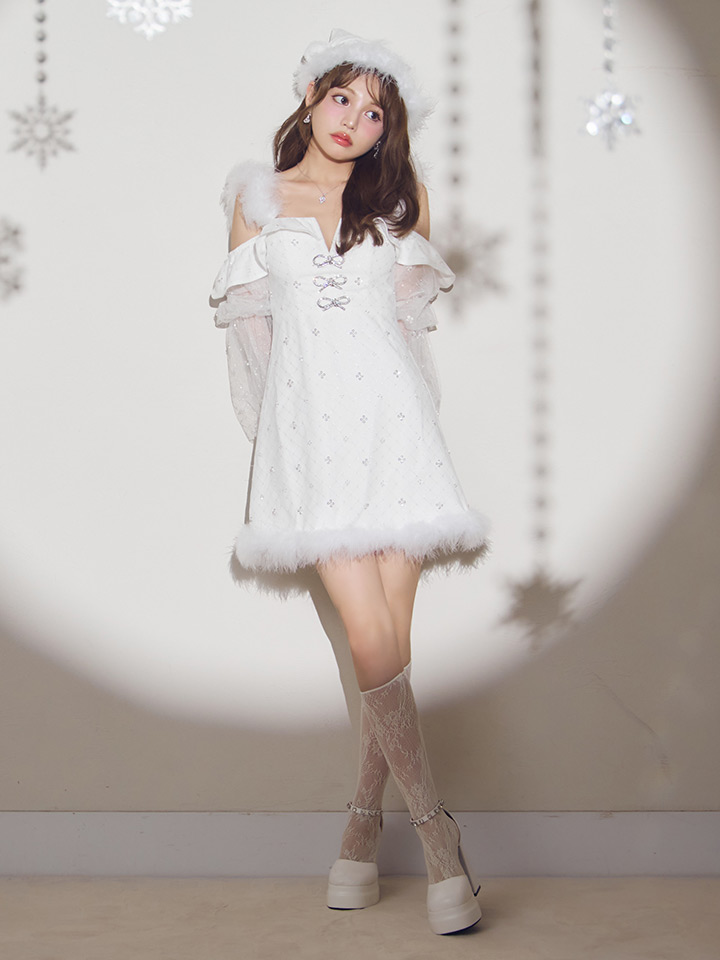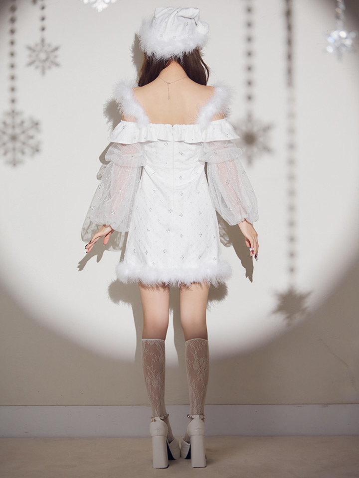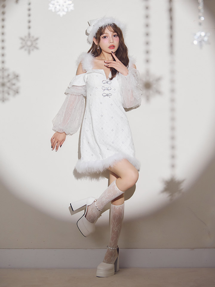 【即日発送】【送料無料!】【サンタ】オフショルチュール袖リボンサンタコスプレ【コスプレ2点セット】【XS-Lサイズ/1カラー】[OF01] [SS-193-SB-dzw-W-25PO]
