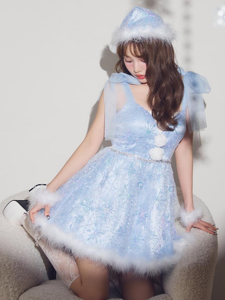 【即日発送】【サンタ】スノーフレークティアードサンタコスプレ【コスプレ4点セット】【XS-Mサイズ/1カラー】[OF04] [SS-160-YN-dzw-BL-25PO]