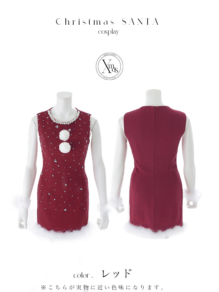 - > 【即日発送】【サンタ】ストーンビジューノースリーブタイトサンタコスプレ【コスプレ4点セット】【XS-Lサイズ/3カラー】[OF01]