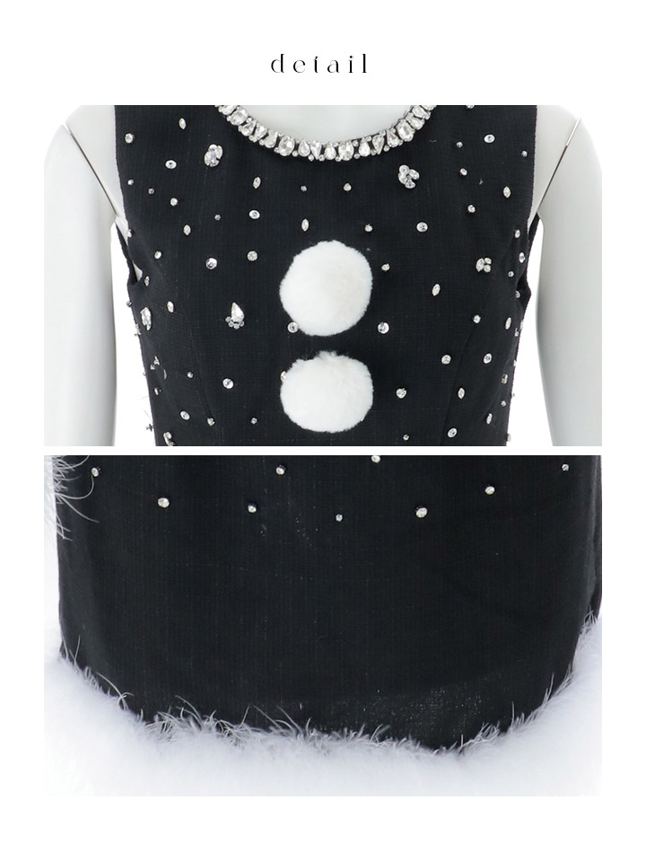 ストーン ビジュー ノースリーブ タイト