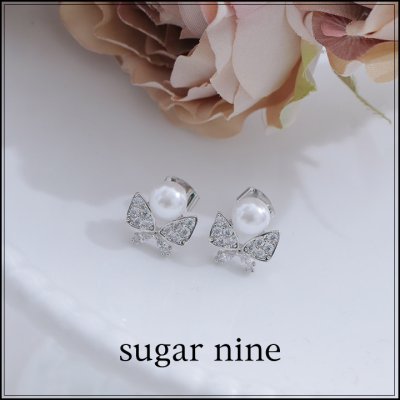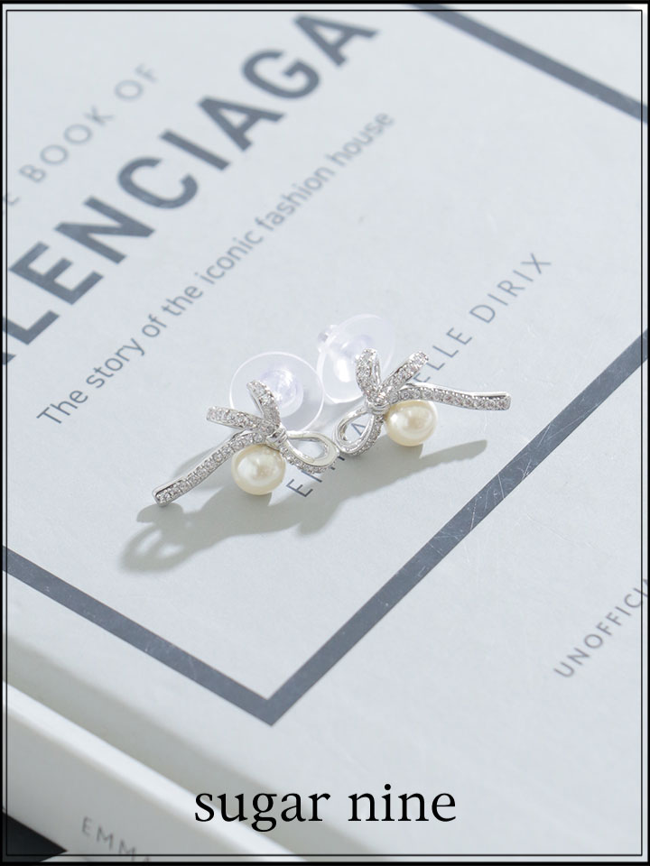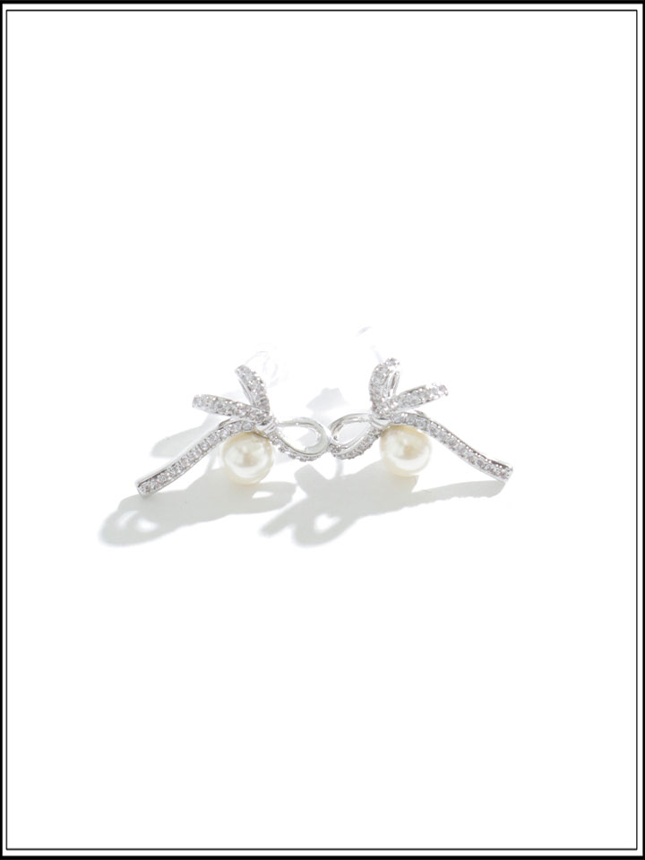 【ピアス】ビジューリボンパールピアス【Fサイズ/1カラー】[OF02] 【YN】