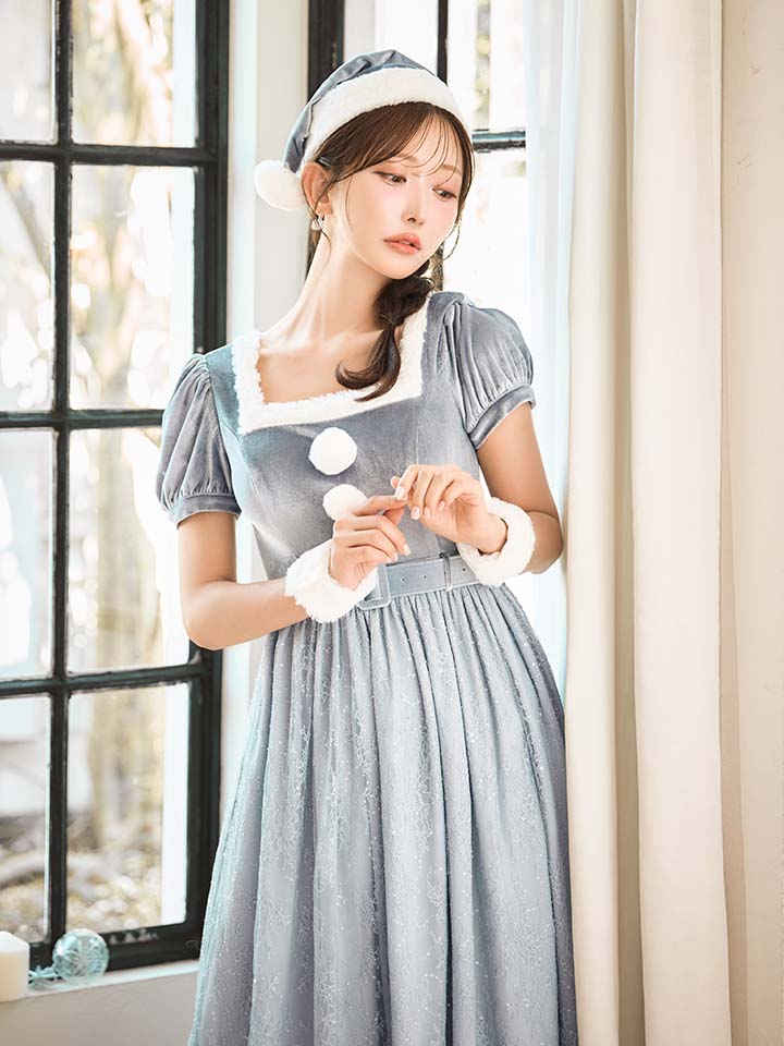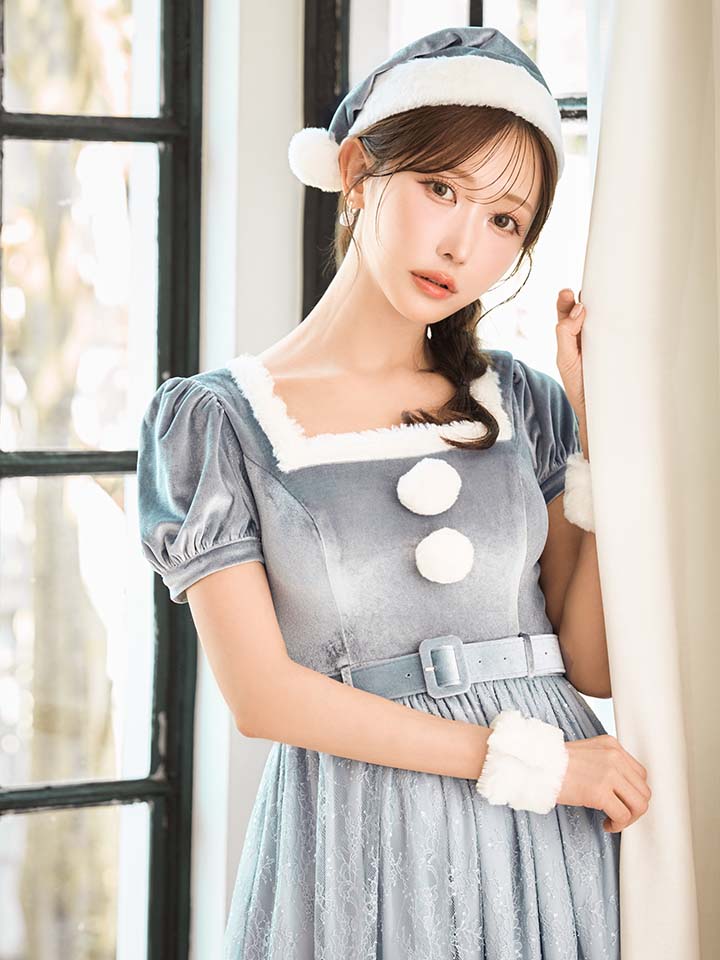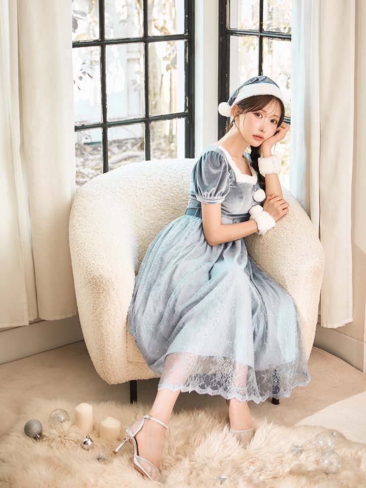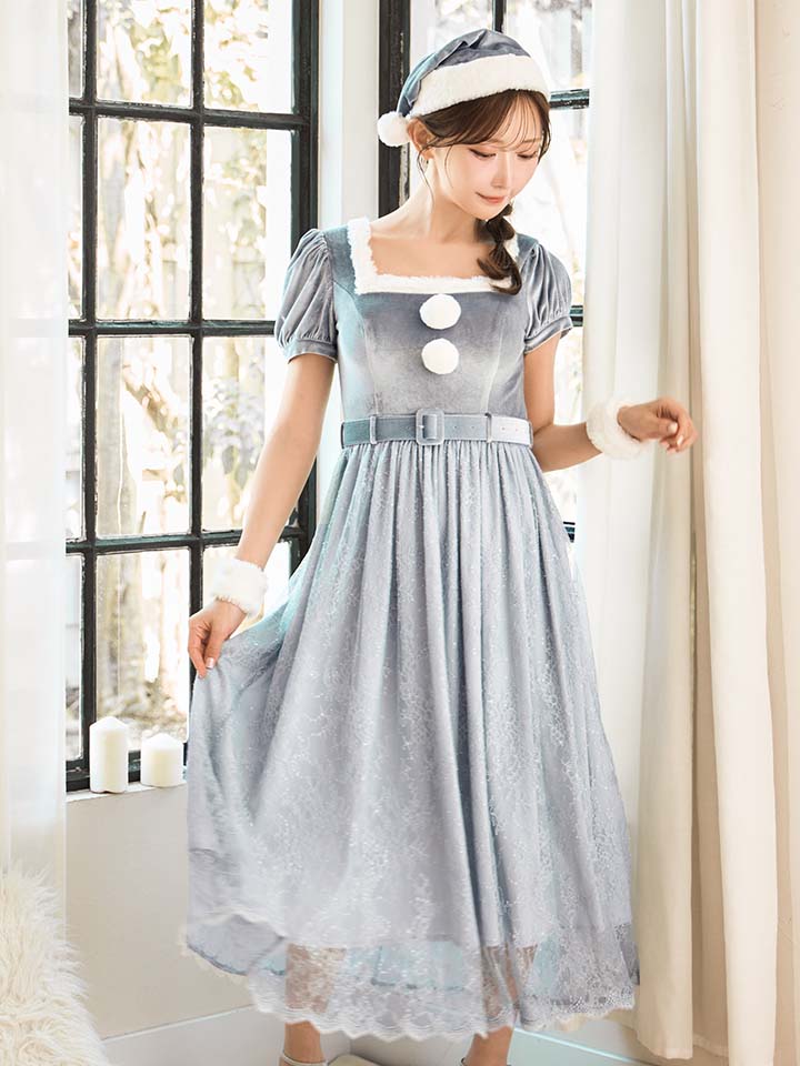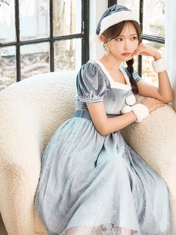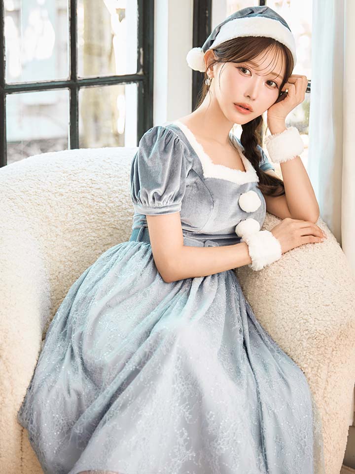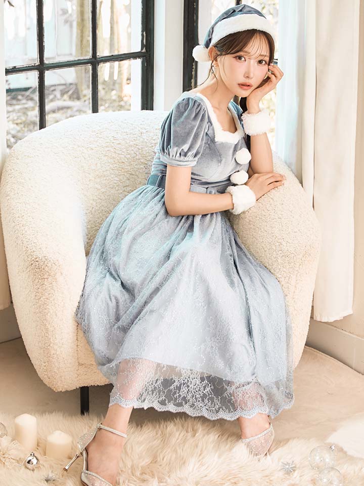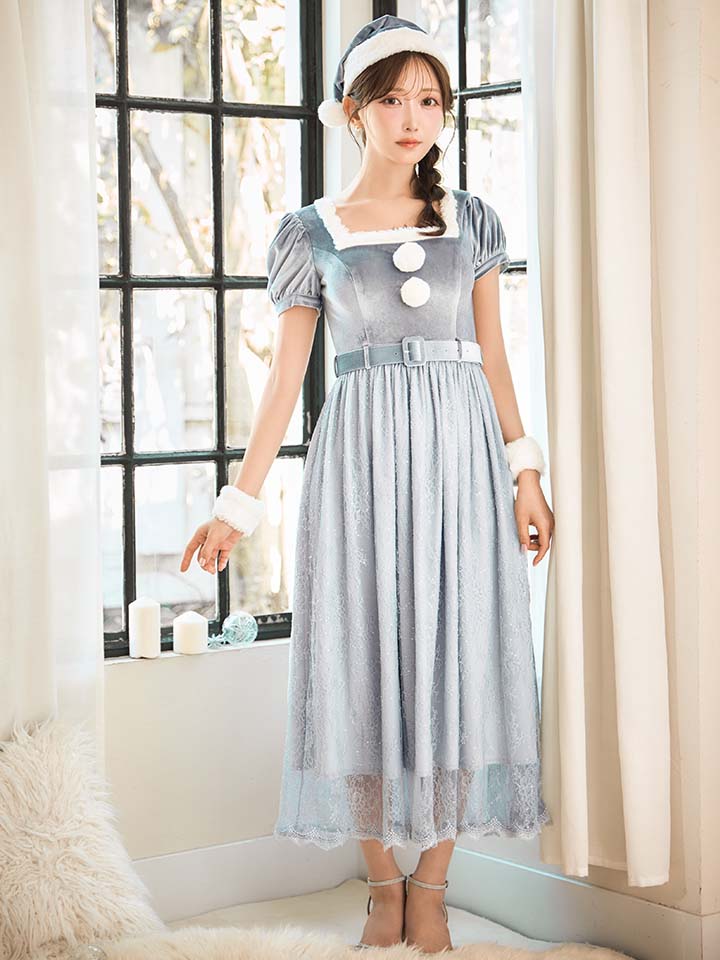 SALE!【サンタコス 5点セット】【S-Mサイズ/2カラー】ベロアワンピースサンタ[OF01] [SS-038-SB-dzw-BL-25YI]
