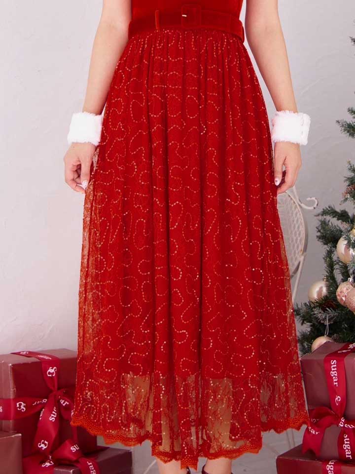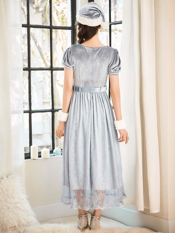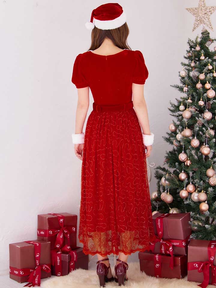 #フレア #ワンピース #Aライン #袖あり #半袖 #レース #ベロア #大人 #クリスマス #パーティ #サンタコス #サンタさん