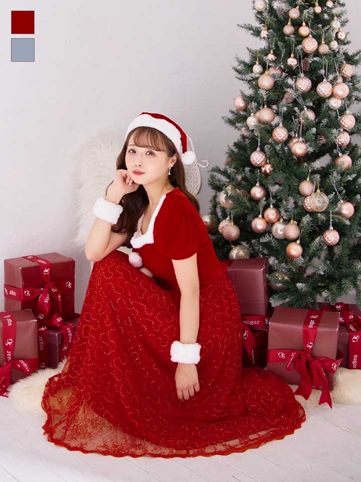 - > SALE!【サンタコス 5点セット】【S-Mサイズ/2カラー】ベロアワンピースサンタ[OF01]