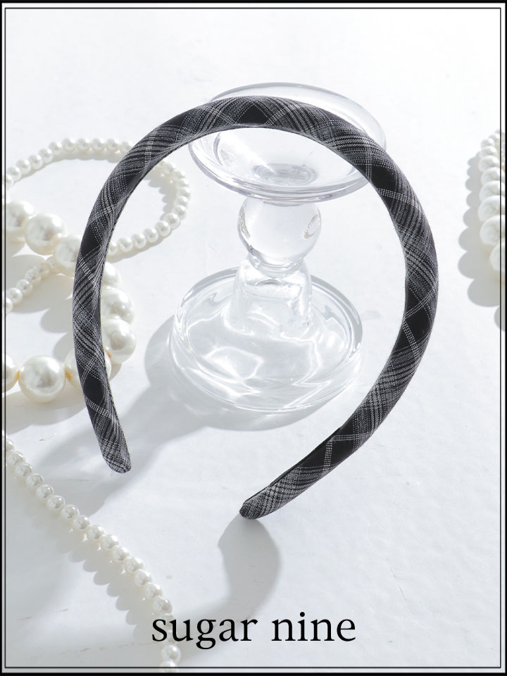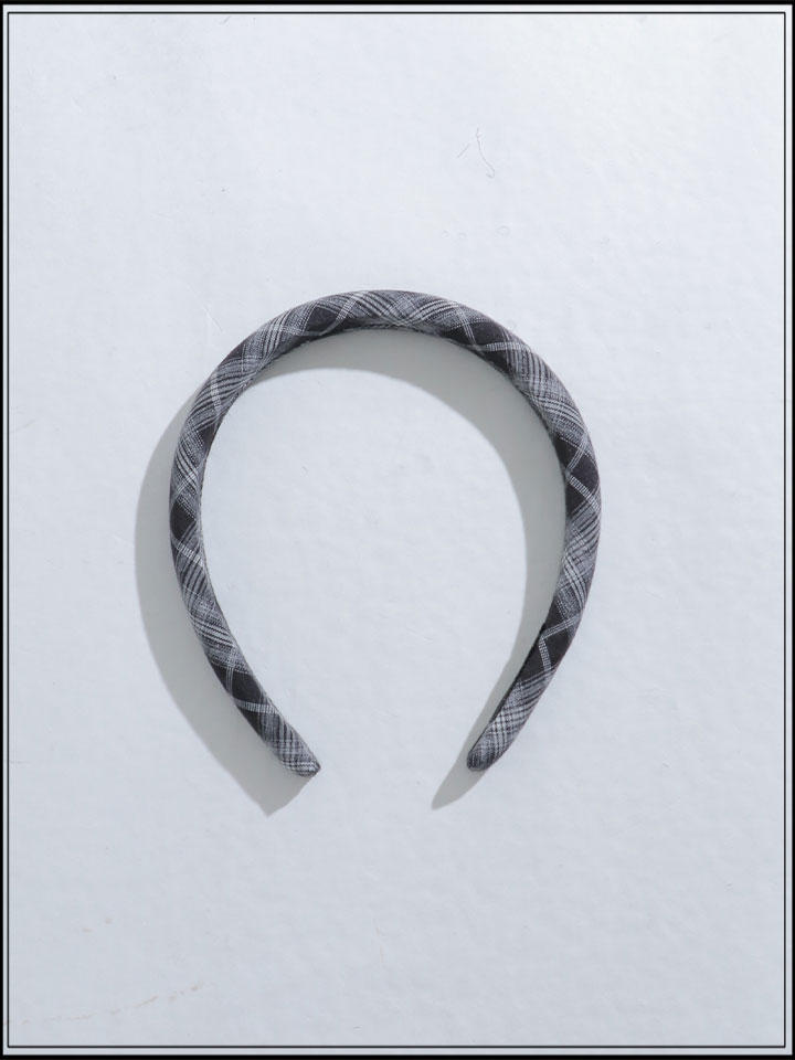 オンブレチェックの生地がカジュアルなカチューシャ。