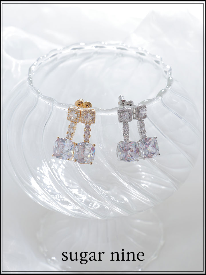 【ピアス】スクエアストーンチェーンピアス【Fサイズ/2カラー】[OF02]【YN】